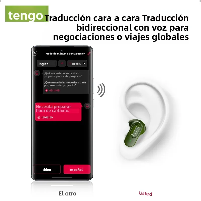 HTC NE51 Auriculares Bluetooth TWS Auriculares deportivos inalámbricos de larga duración con micrófono Auriculares intrauditivos Auriculares con traductor AI