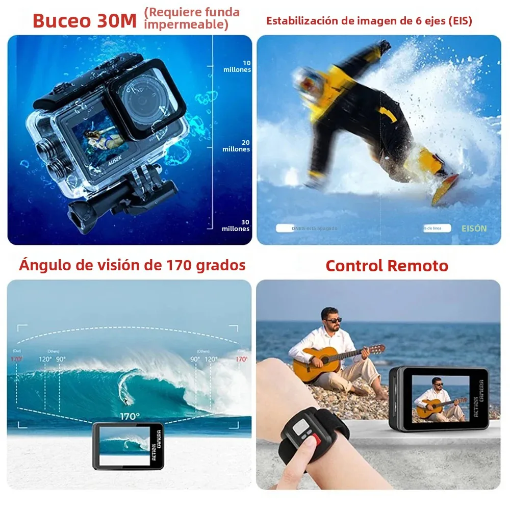 Cámara de Acción AUSEK M81TR 5K 4K60FPS 50MP DVR EIS con Filtros Opcionales, Zoom 5X, Pregrabación, Cámara Web 1080P, Vlog, Wi-Fi, Cámara Deportiva