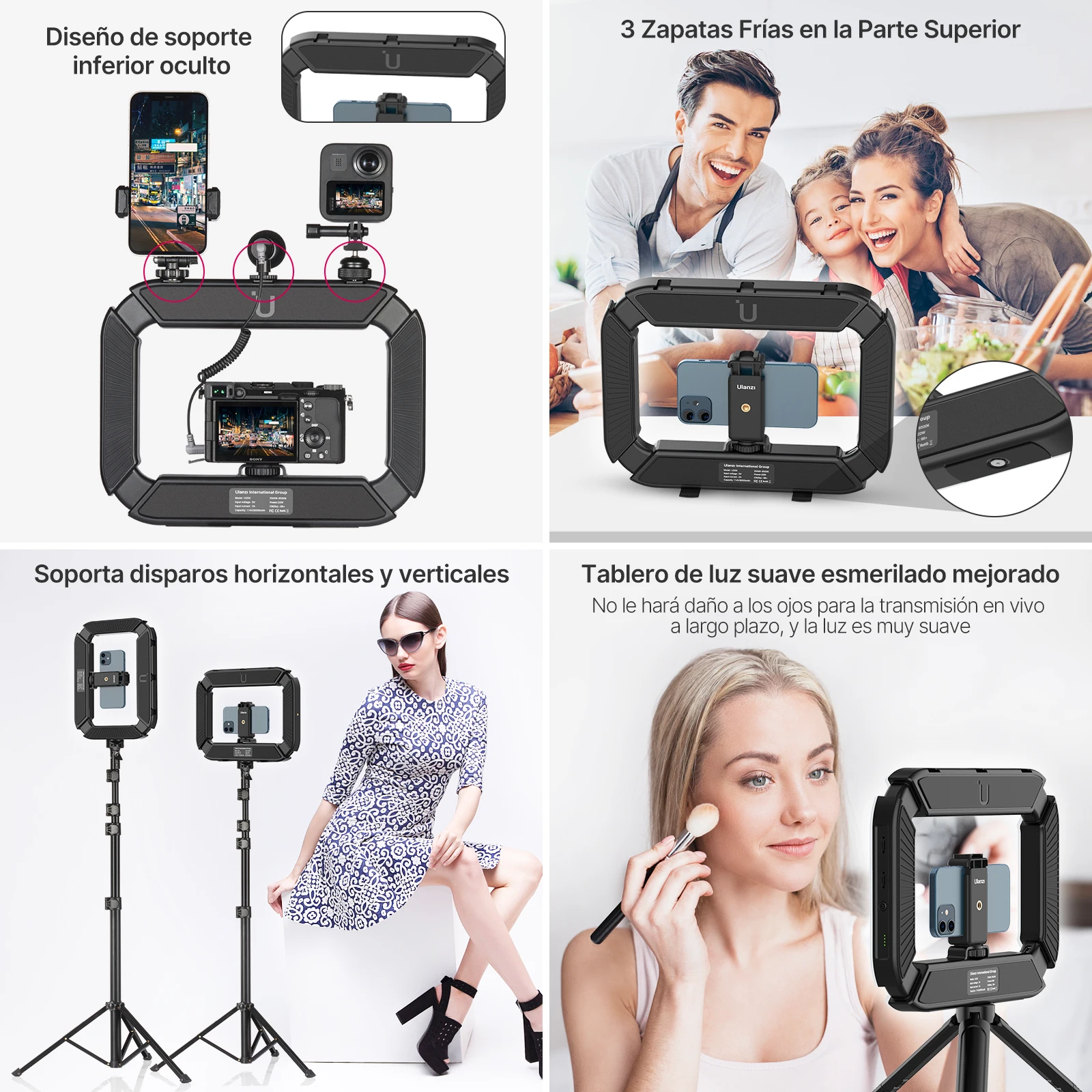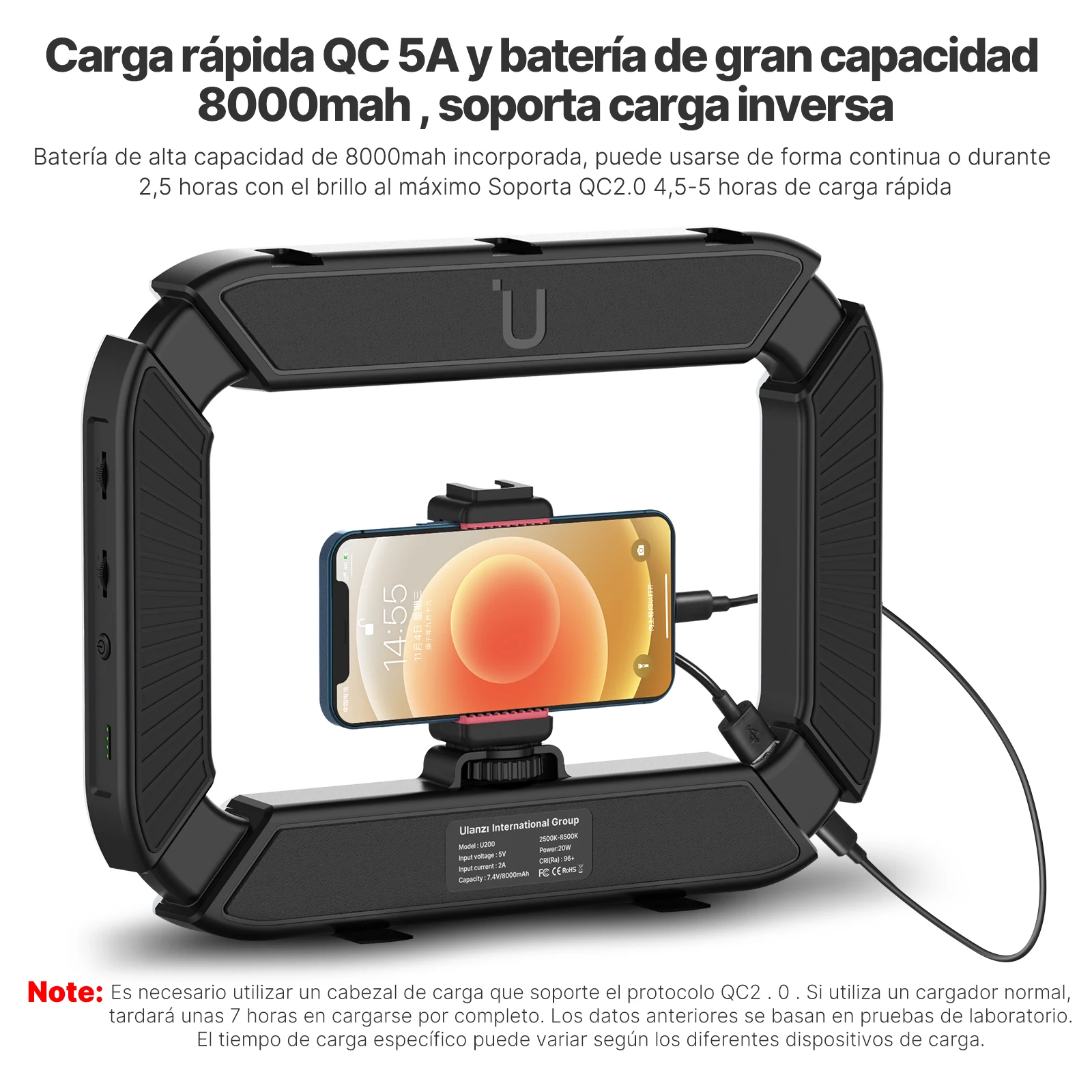Ulanzi U200 U-200 Smartphone Video Rig Luz de vídeo LED 2 en 1 Anillo de luz Zapata fría para micrófono Tiktok Youtube Luz de plataforma en vivo