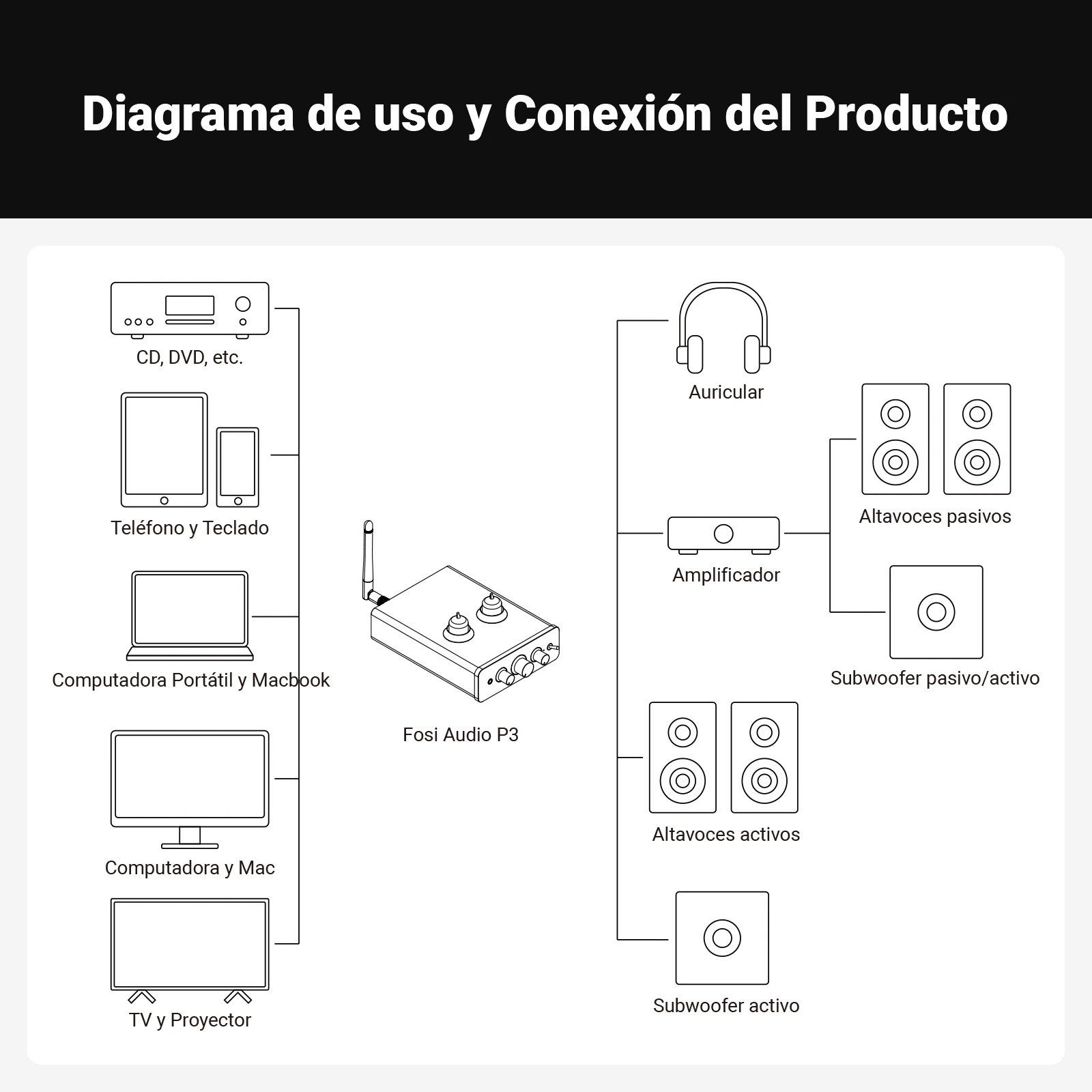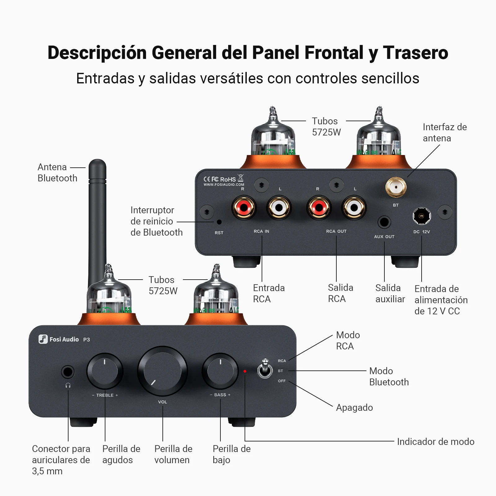Fosi Audio P3 amplificador de tubo Bluetooth válvula preamplificadora estéreo HiFi vacío con Control de tono de agudos y graves para altavoz doméstico