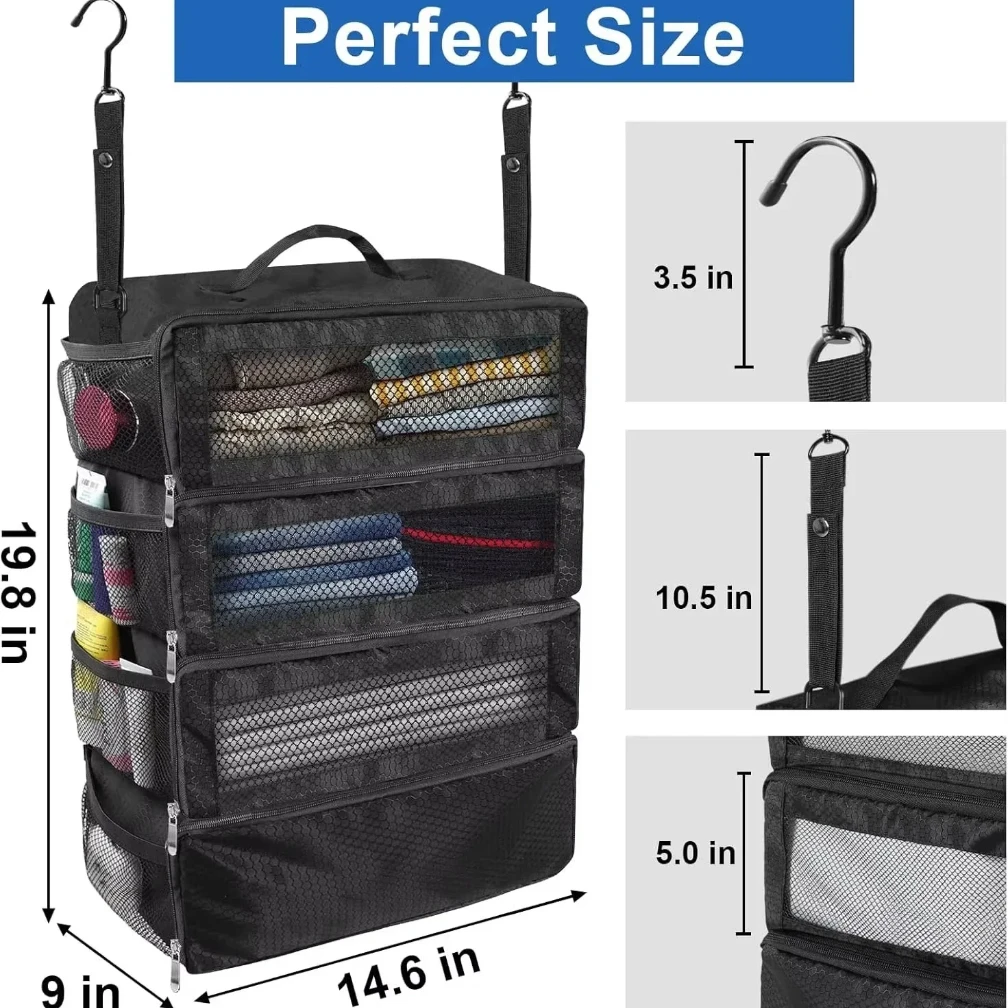 Bolsas organizadoras de maletas, organizador de equipaje de viaje de alta capacidad, embalaje colgante, cubo, armario, bolsas de almacenamiento colgantes plegables
