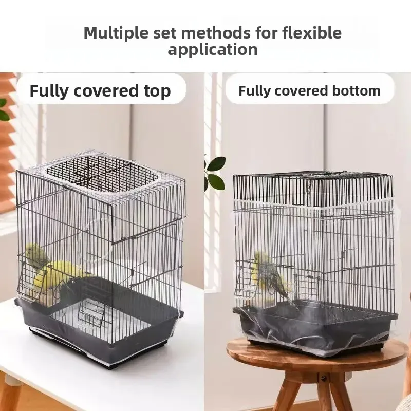Cubierta elástica Universal para jaula de pájaros, red de malla transparente, atrapamoscas de plumas y semillas, protector de falda elástica para jaulas de loros