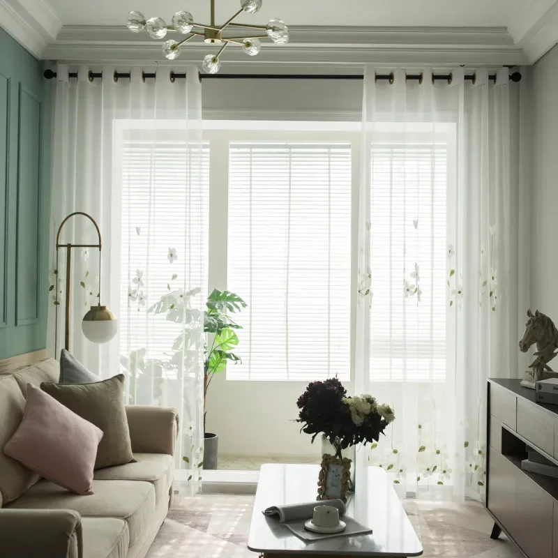 1 unidad de cortinas de tul bordadas coreanas para sala de estar, dormitorio, ventanal, decoración de balcón, cortina de tul, producto terminado, gasa