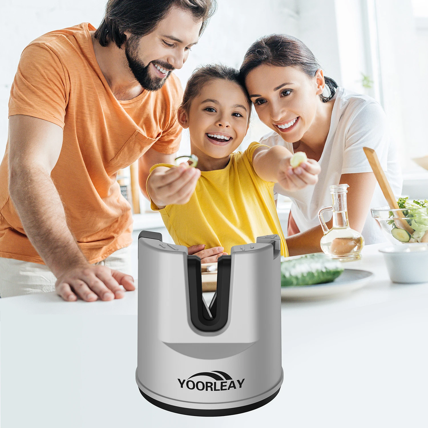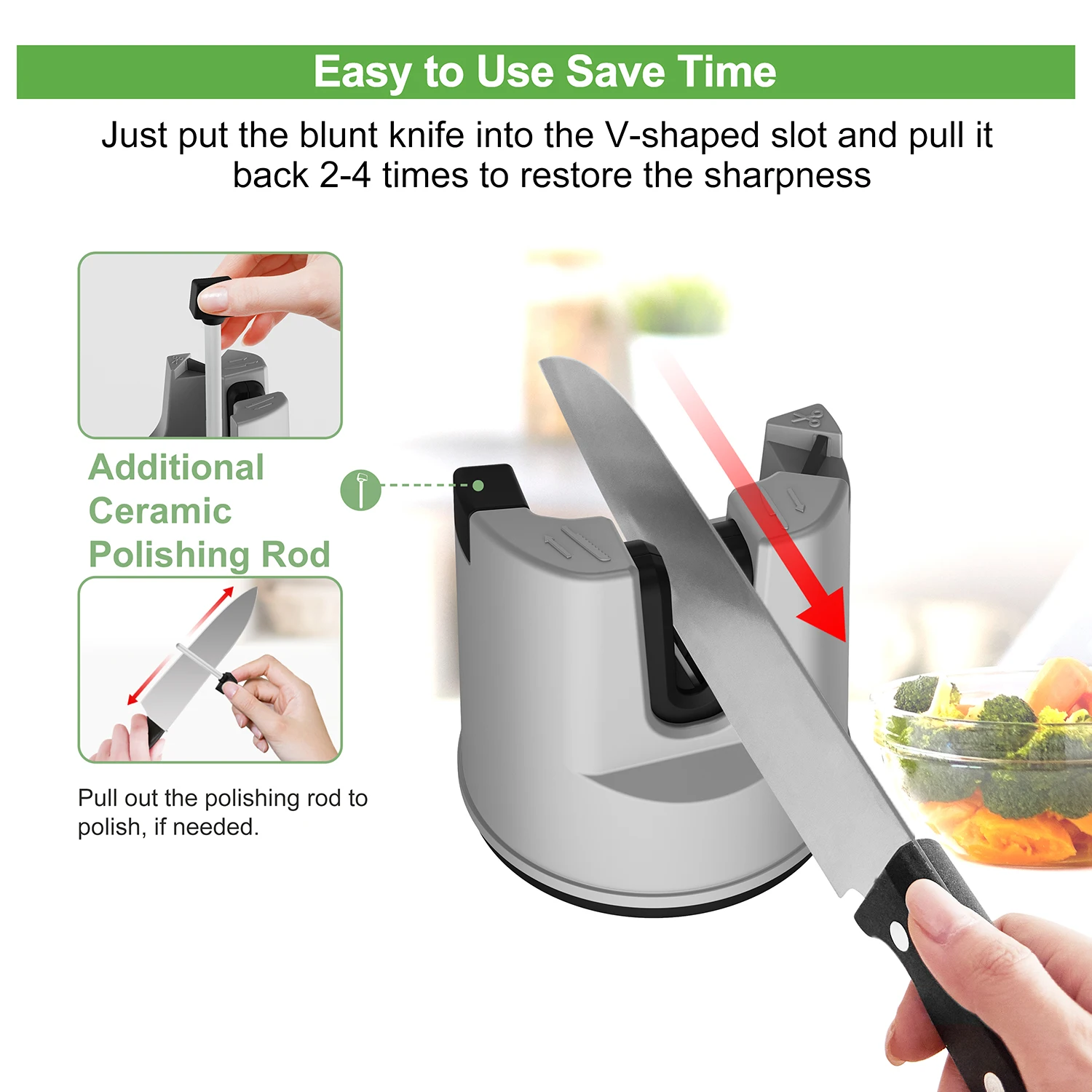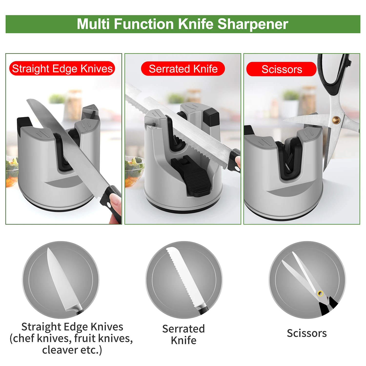 Afiladores de cuchillos de cocina, herramienta de afilado de cuchillos fija con ventosa multifunción para cuchillos rectos y dentados, tijeras