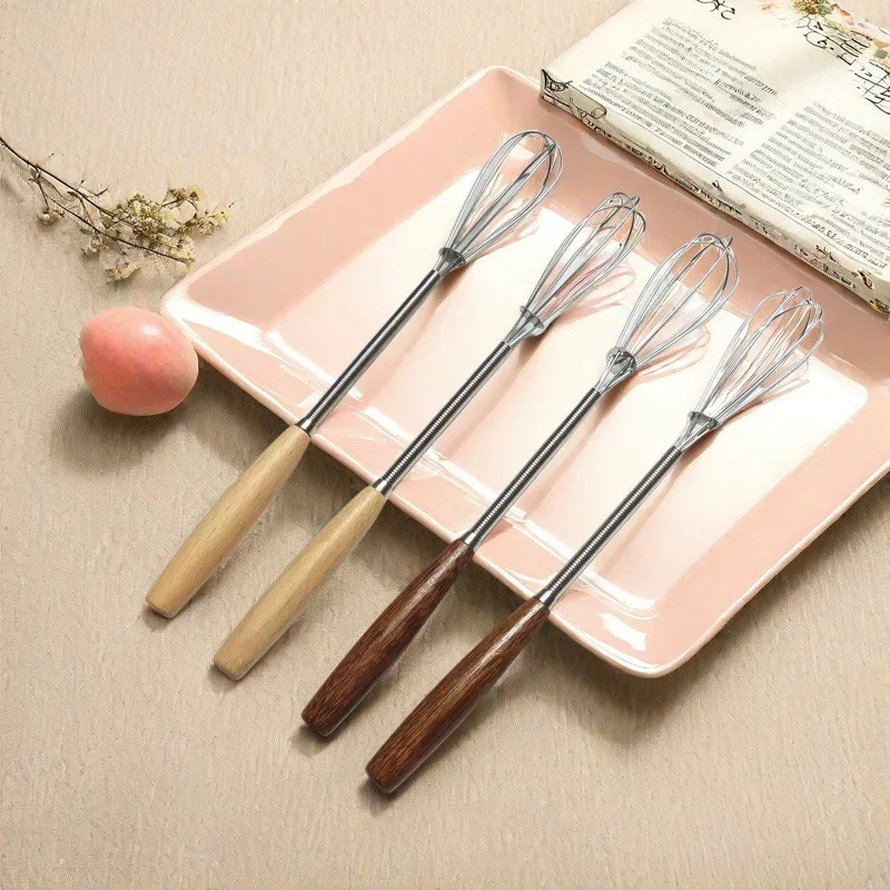 Batidor de acero inoxidable premium con mango de madera maciza, perfecto para mezclar, batir y agitar en la cocina, 1 ud.