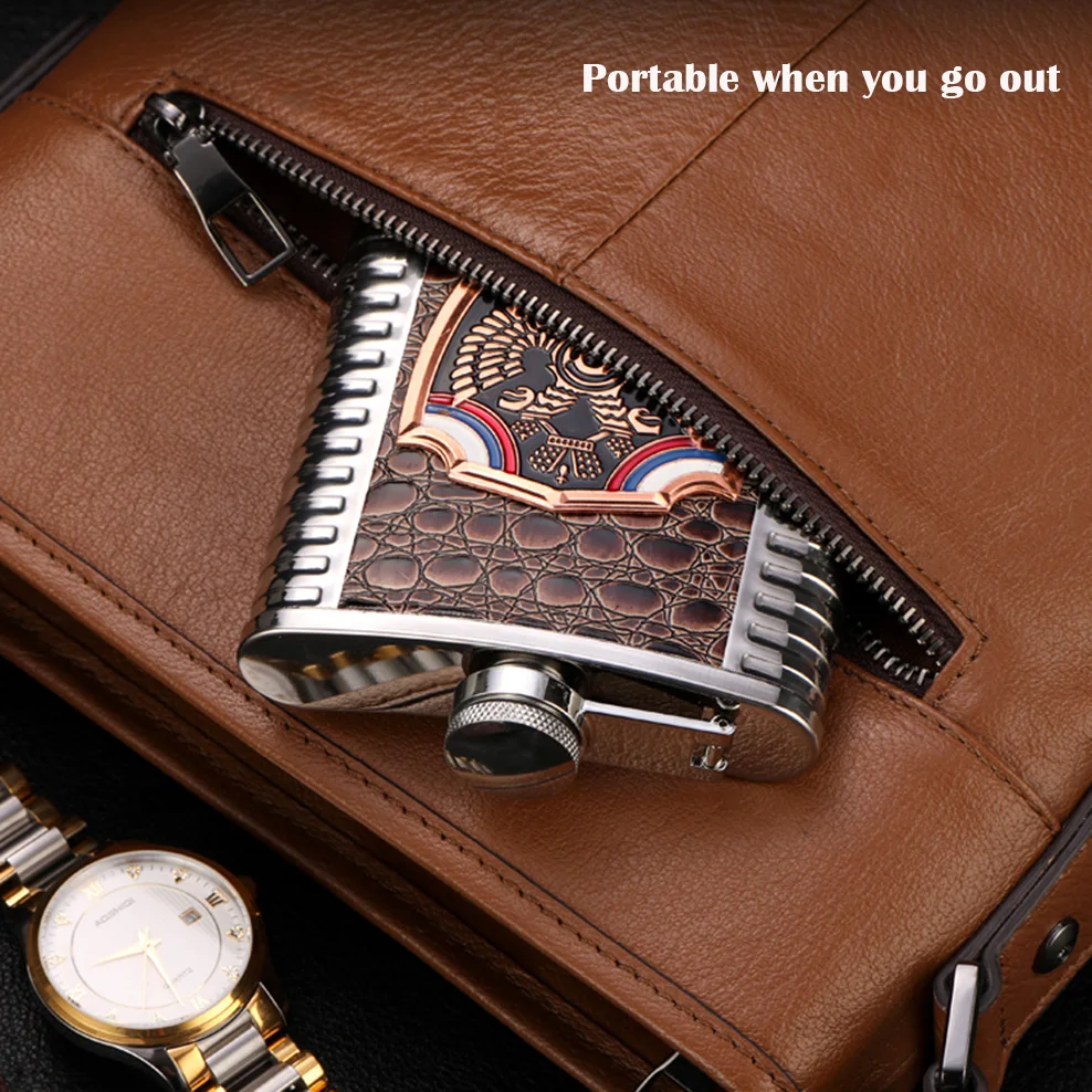 Olla de vino portátil de acero inoxidable 304, para alcohol, embudo de transferencia de frasco de cadera pequeño ruso, Mini botella de vino plana, Flagon