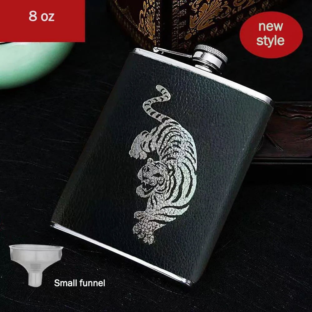 Botella de acero inoxidable 304 de 8 oz para licor, botella rusa para alcohol con embudo, mini flagón plano, set de vino portátil