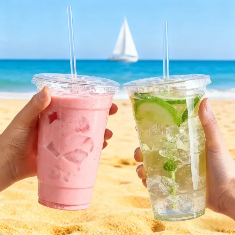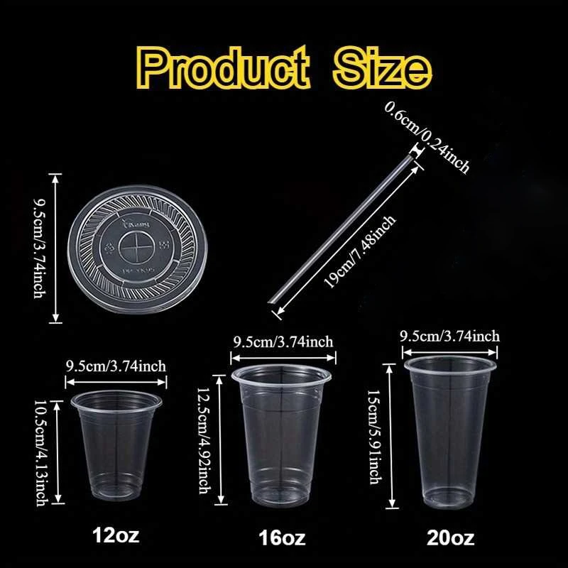 Juego de 50 tazas de té de la leche desechables con pajita, vaso de plástico desechable para beber, reuniones familiares adecuadas, bebidas frías para acampar al aire libre