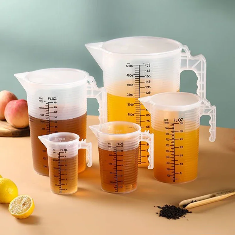 Tazas medidoras de plástico con tapa, contenedor de líquidos graduado, herramientas de medición para hornear transparentes de alto volumen, 100-5000ml