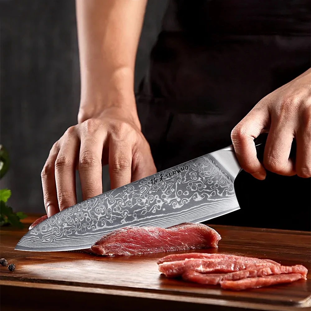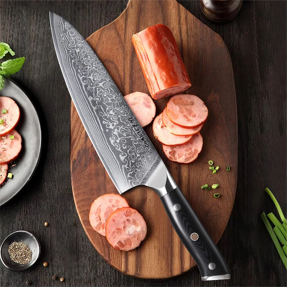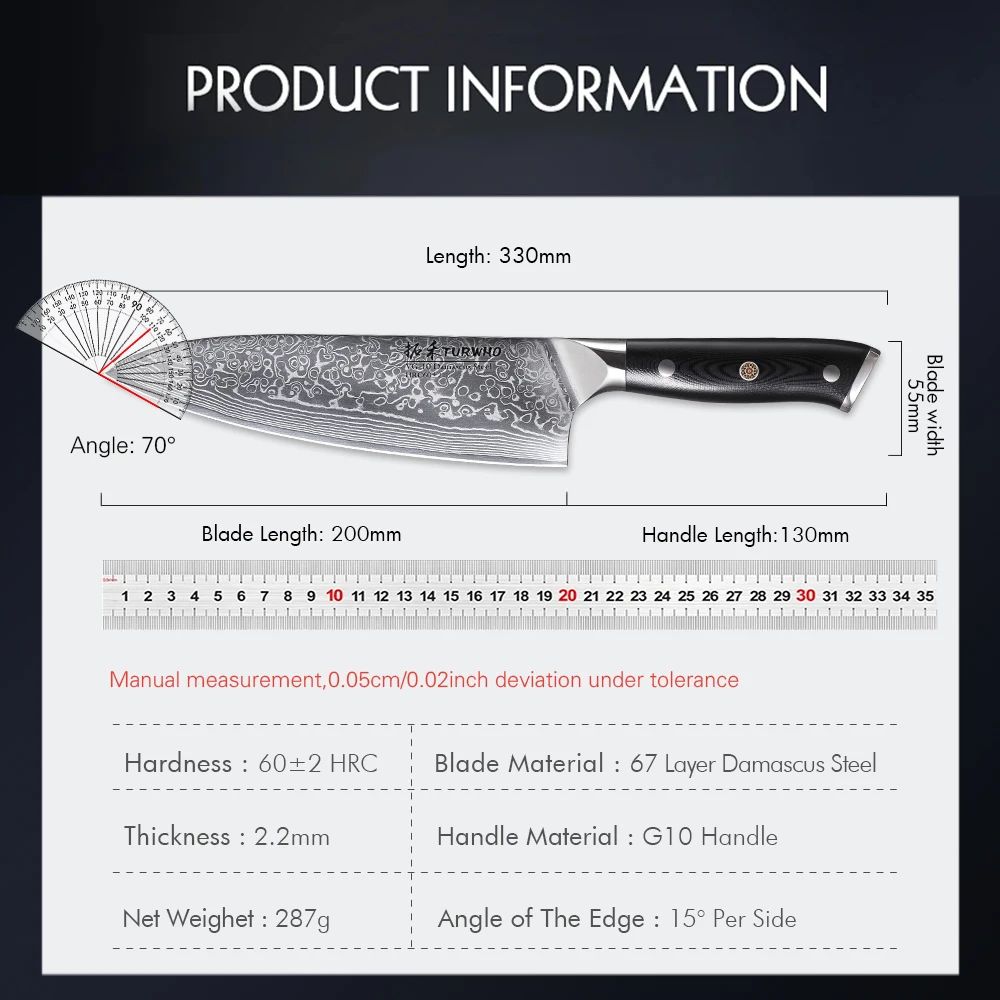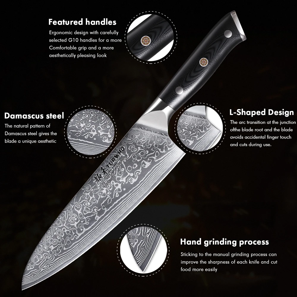 TURWHO-cuchillos de Chef profesionales de 8 pulgadas, cuchillo de cocina japonés de 67 capas de acero damasco súper afilado para carne y verduras, herramientas de cocina