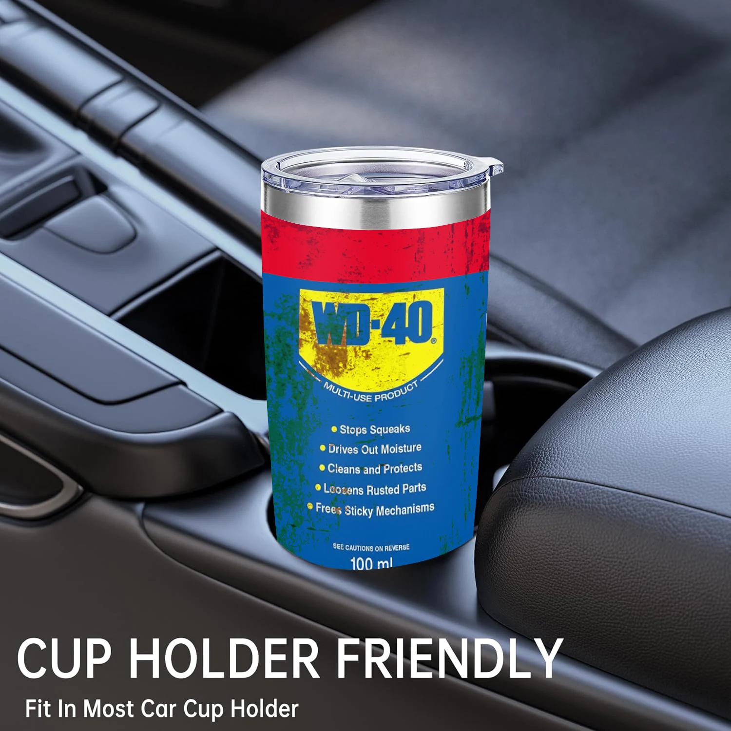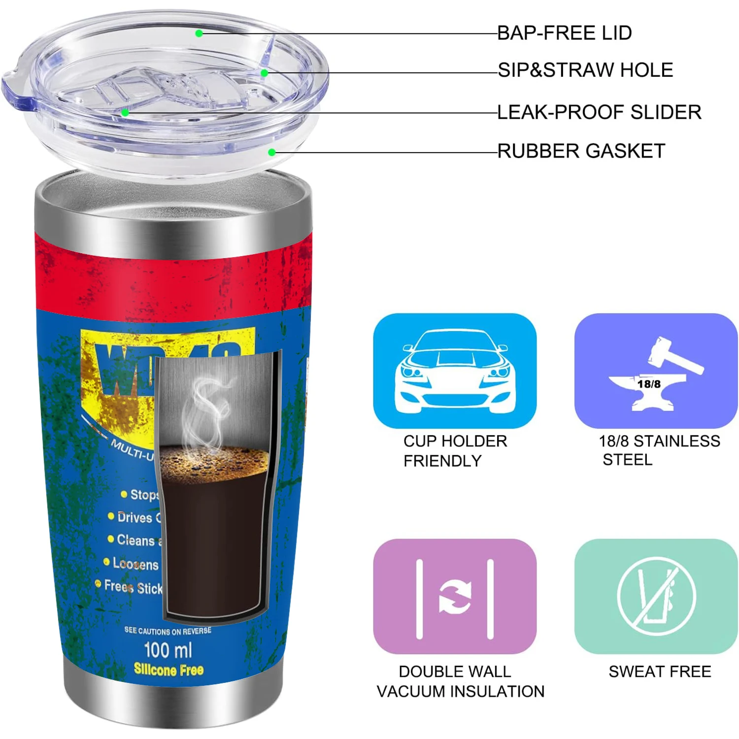 Vaso con aislamiento al vacío de acero inoxidable WD40 de 20Oz, doble pared con pajita y tapa, taza para coche con bebida fría y caliente, diseño desgastado