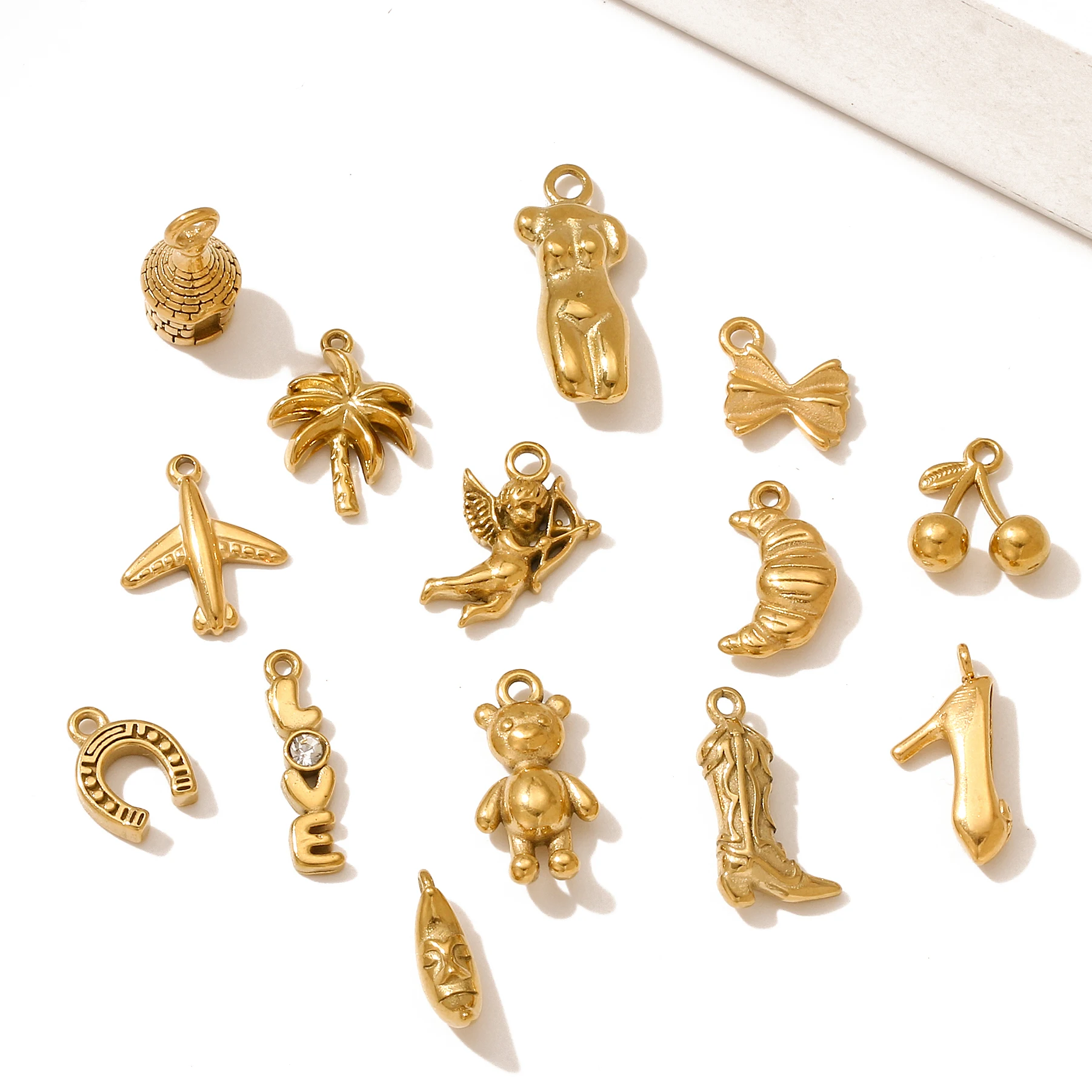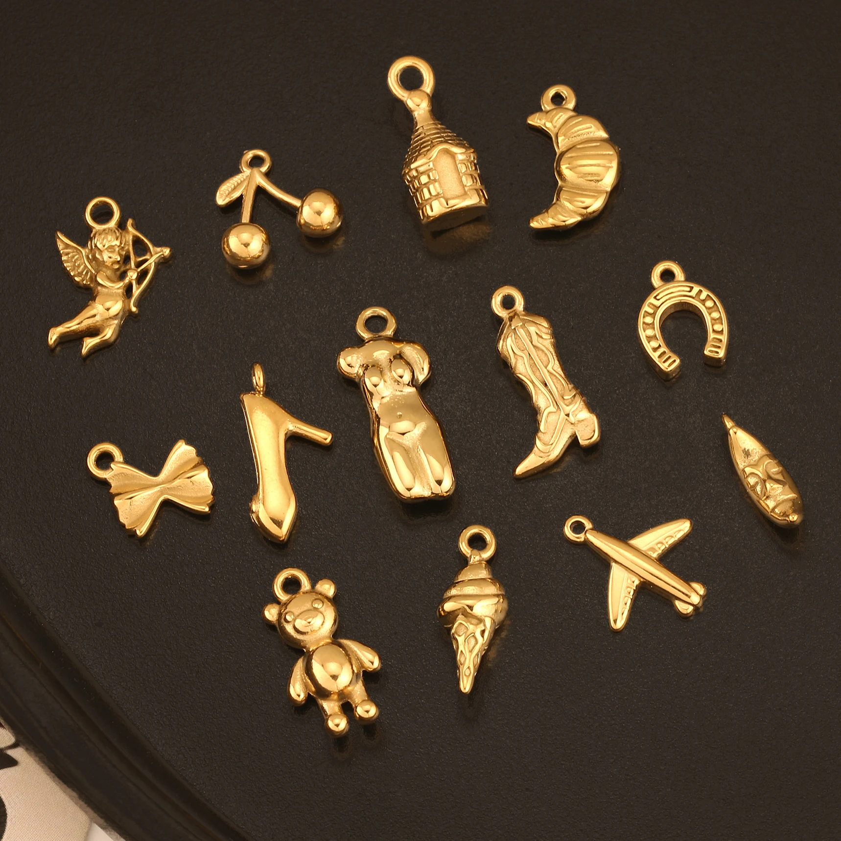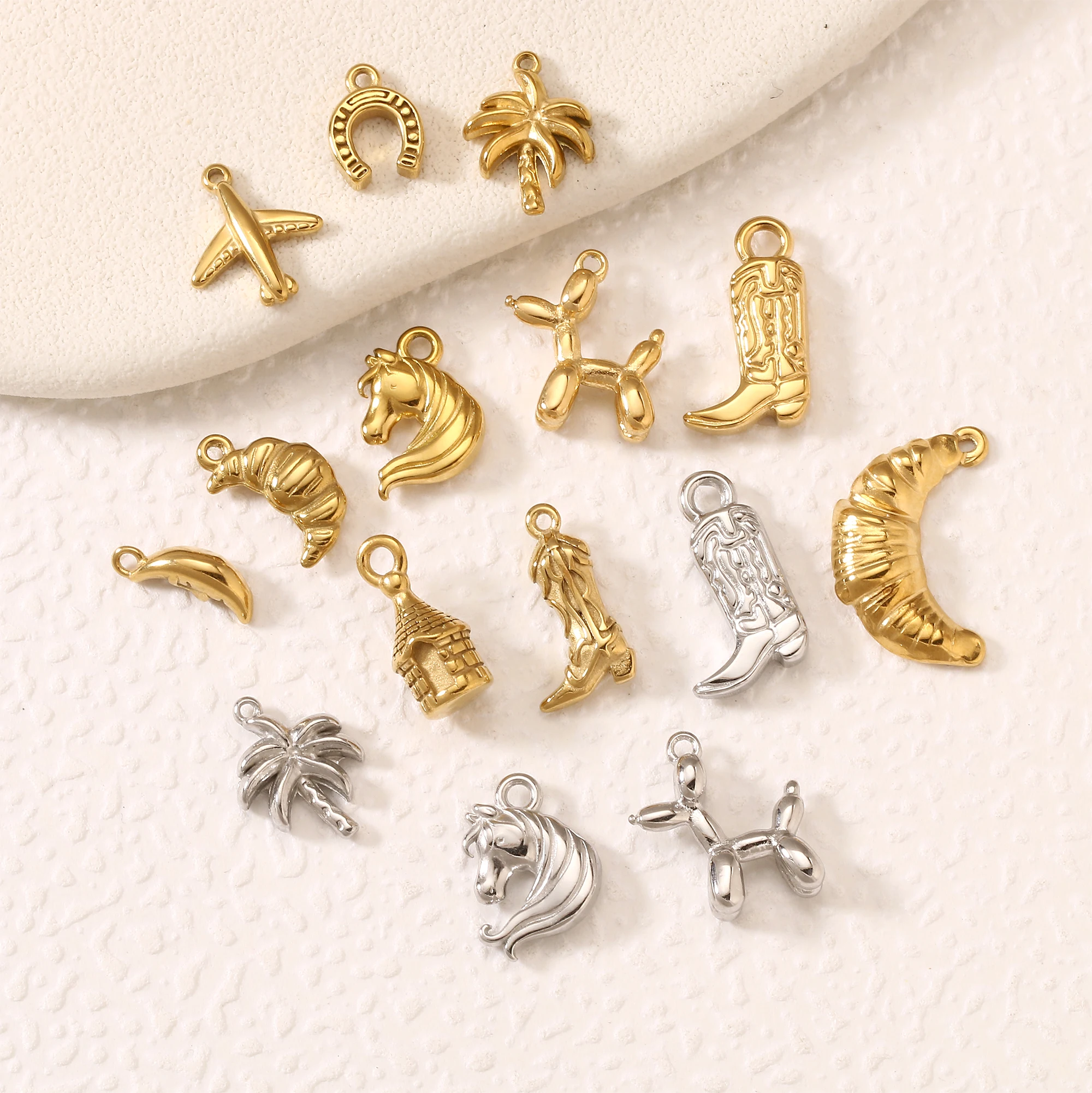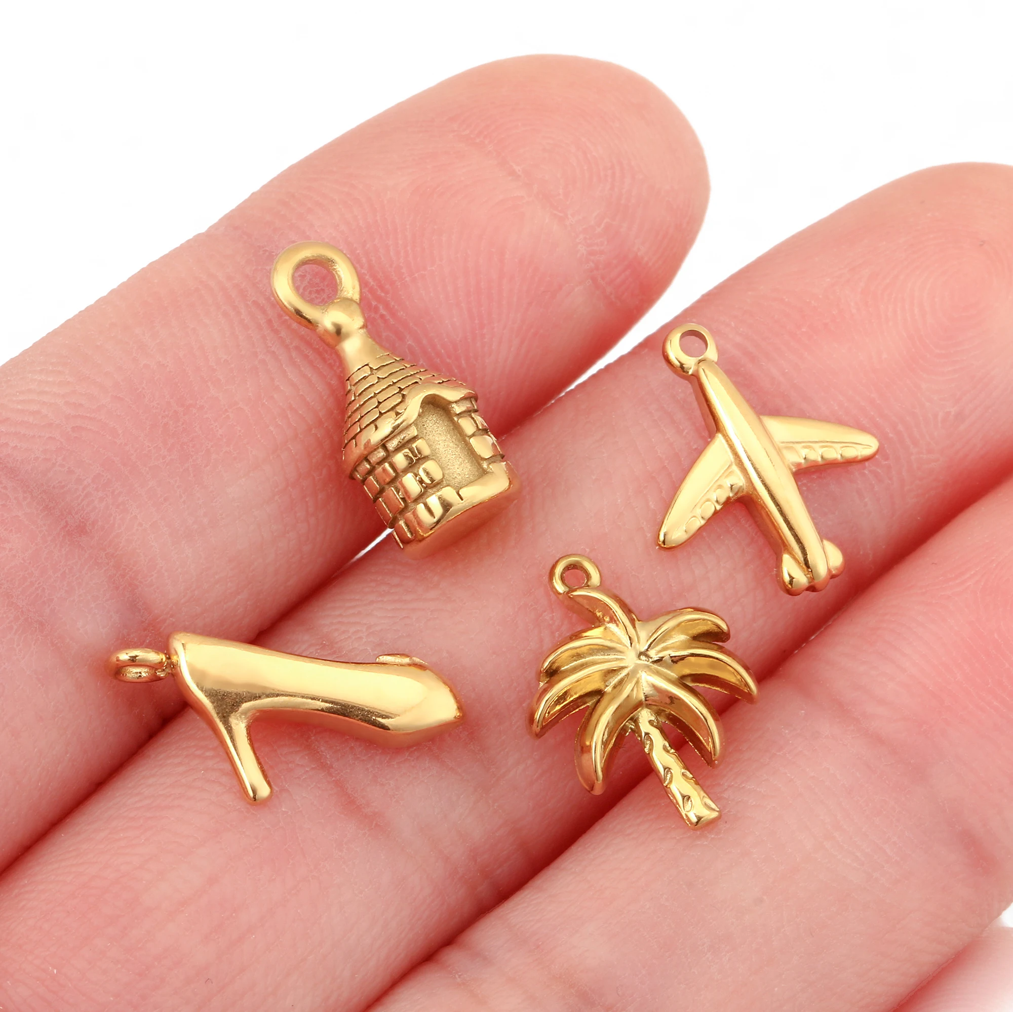 3 uds Reto Cactus/bota/violín/halla encanto de acero inoxidable pequeño helado 3D/luna colgante DIY pendiente pulsera fabricación de joyería