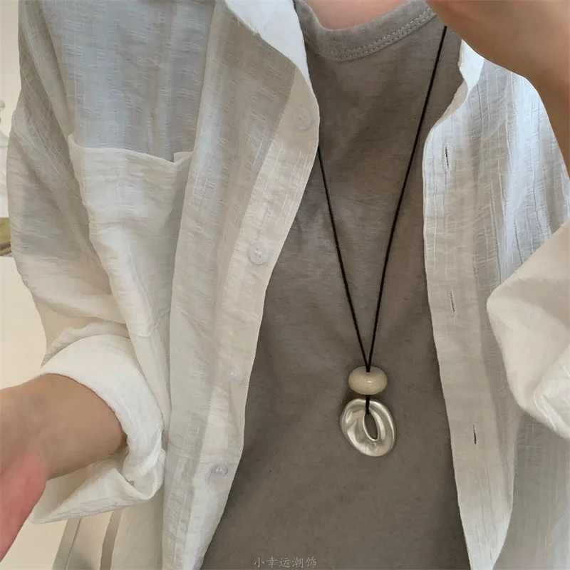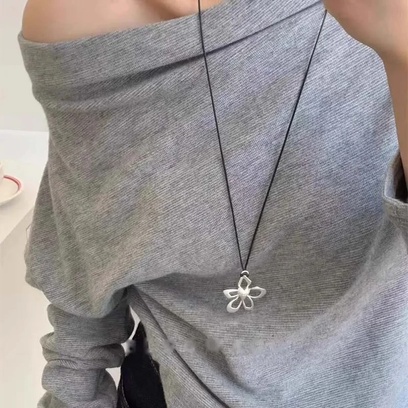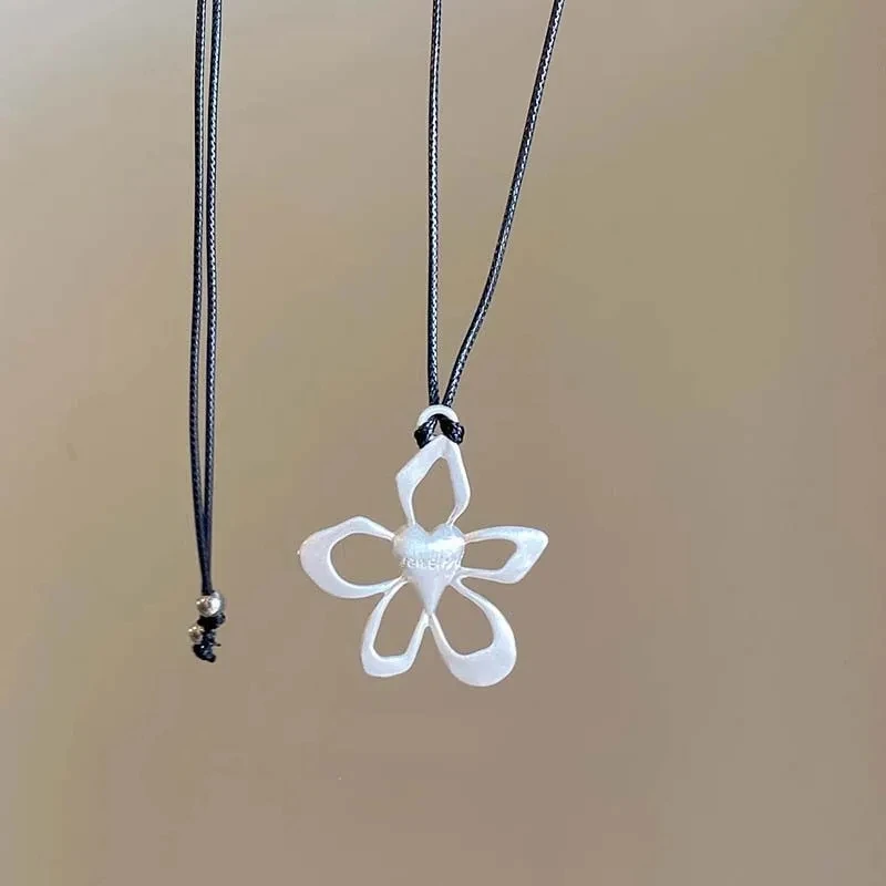 Collar coreano con colgante de flor y corazón de amor para mujer y hombre, cadena larga geométrica a la moda, joyería para el cuello