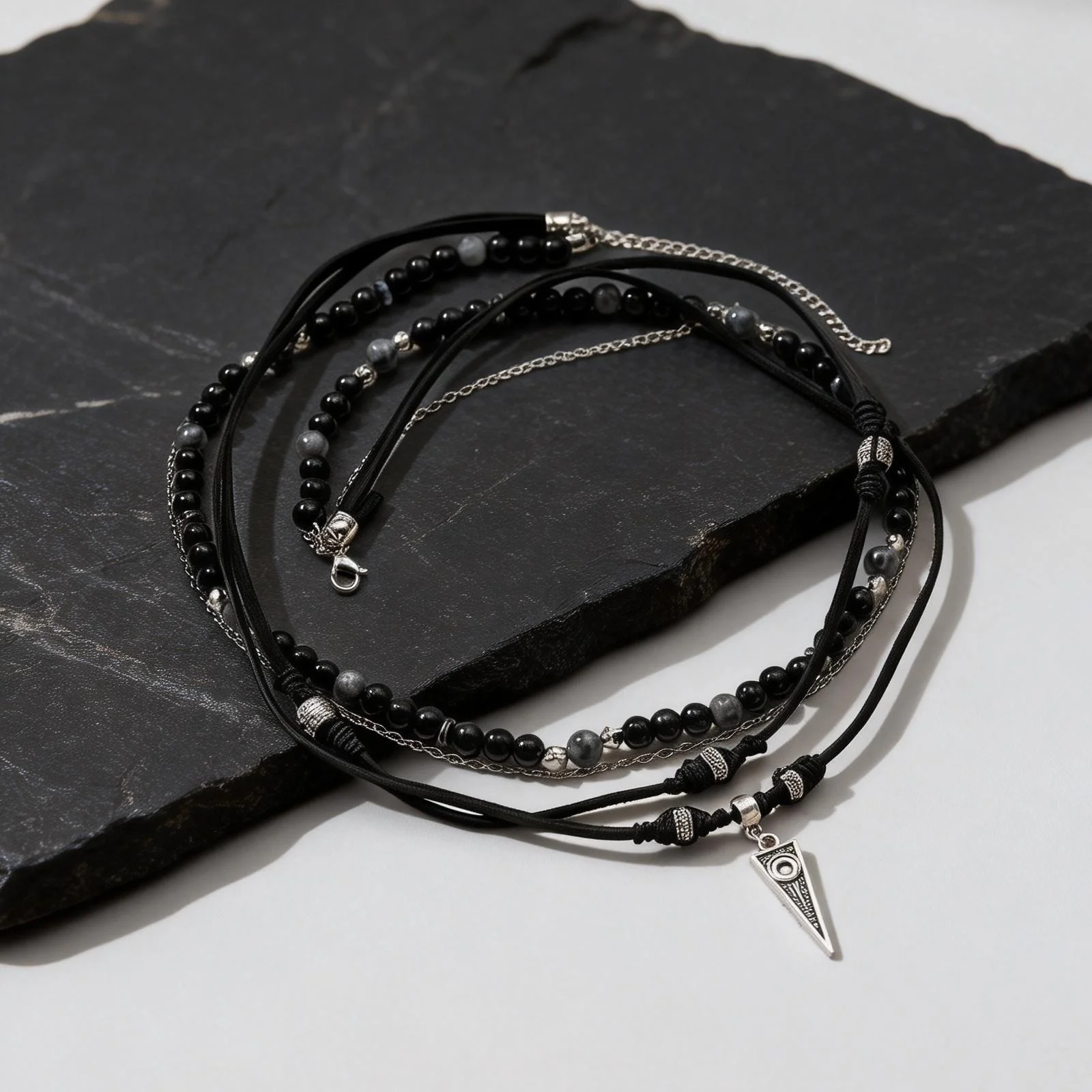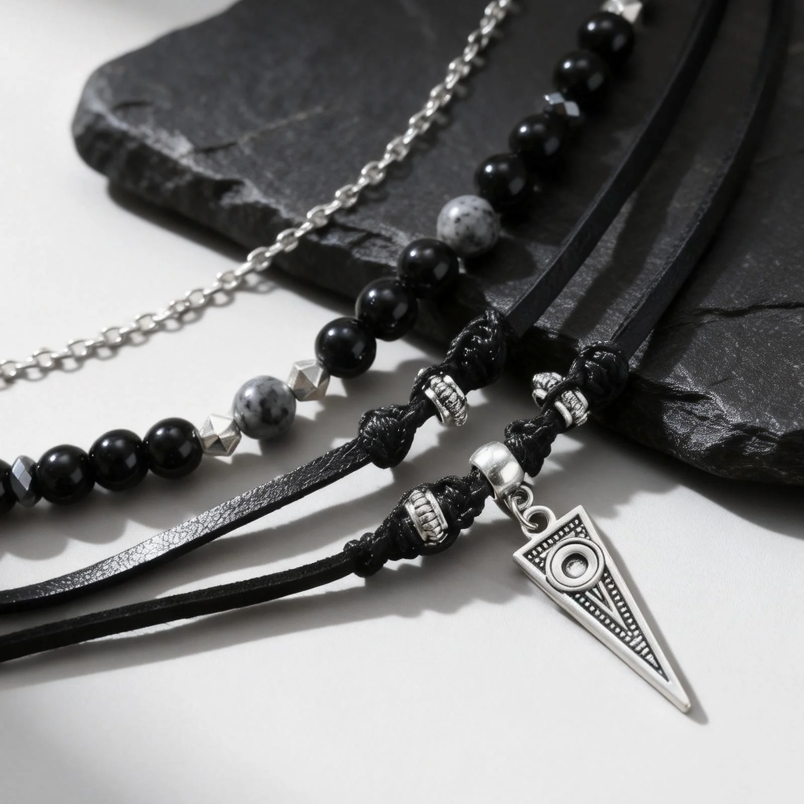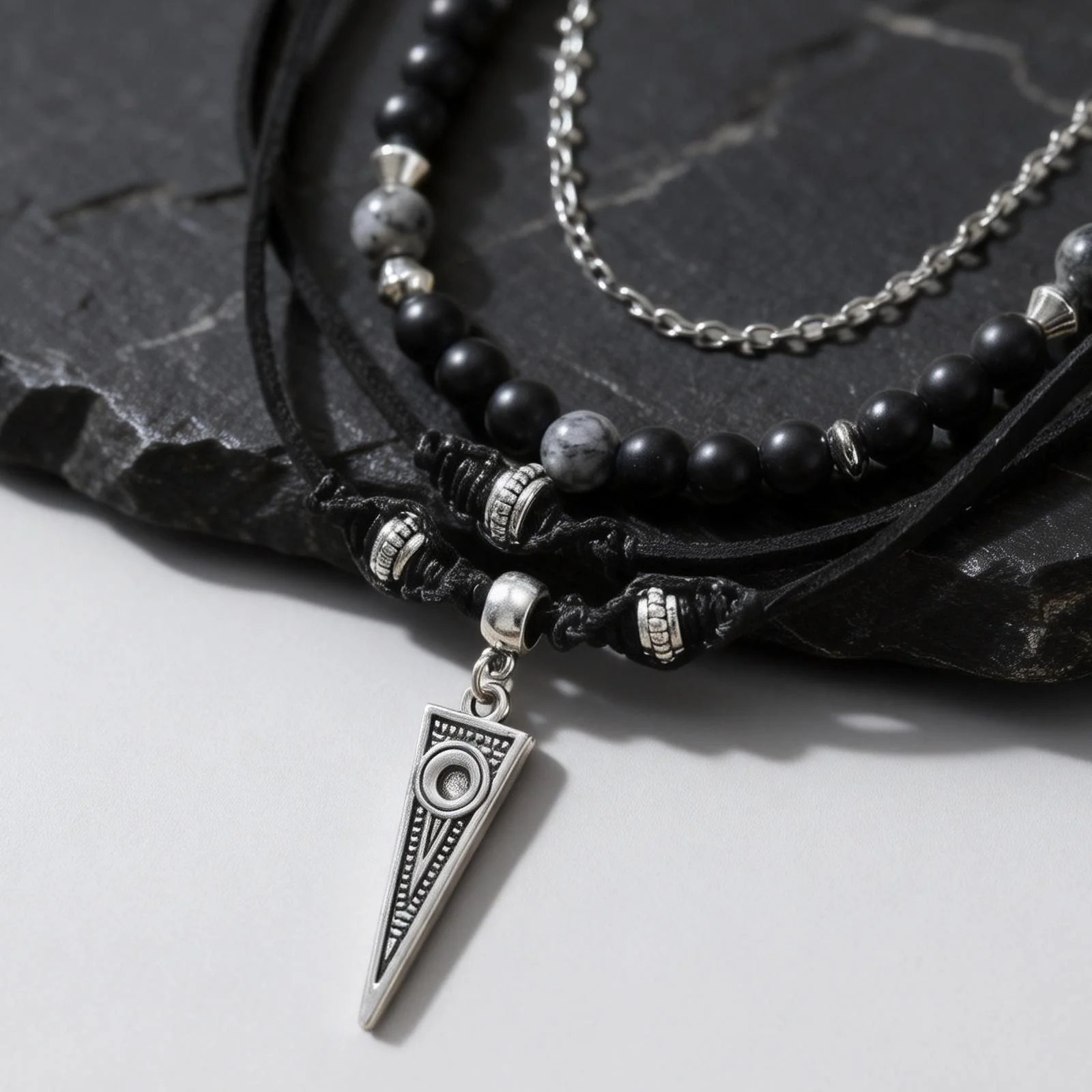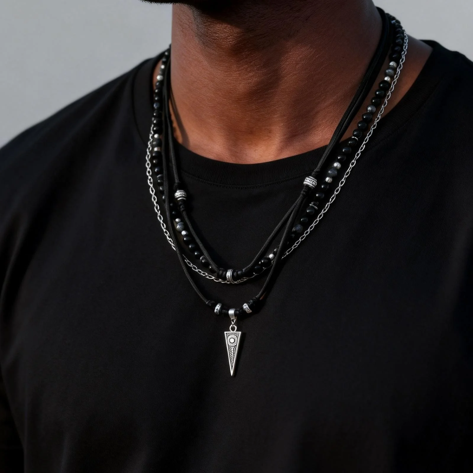 Collar de Cuero Negro Multicapa Estilo Rock Punk para Hombre, Collar Casual con Colgante Geométrico Pequeño, Resistente al Agua, Ideal para Regalo