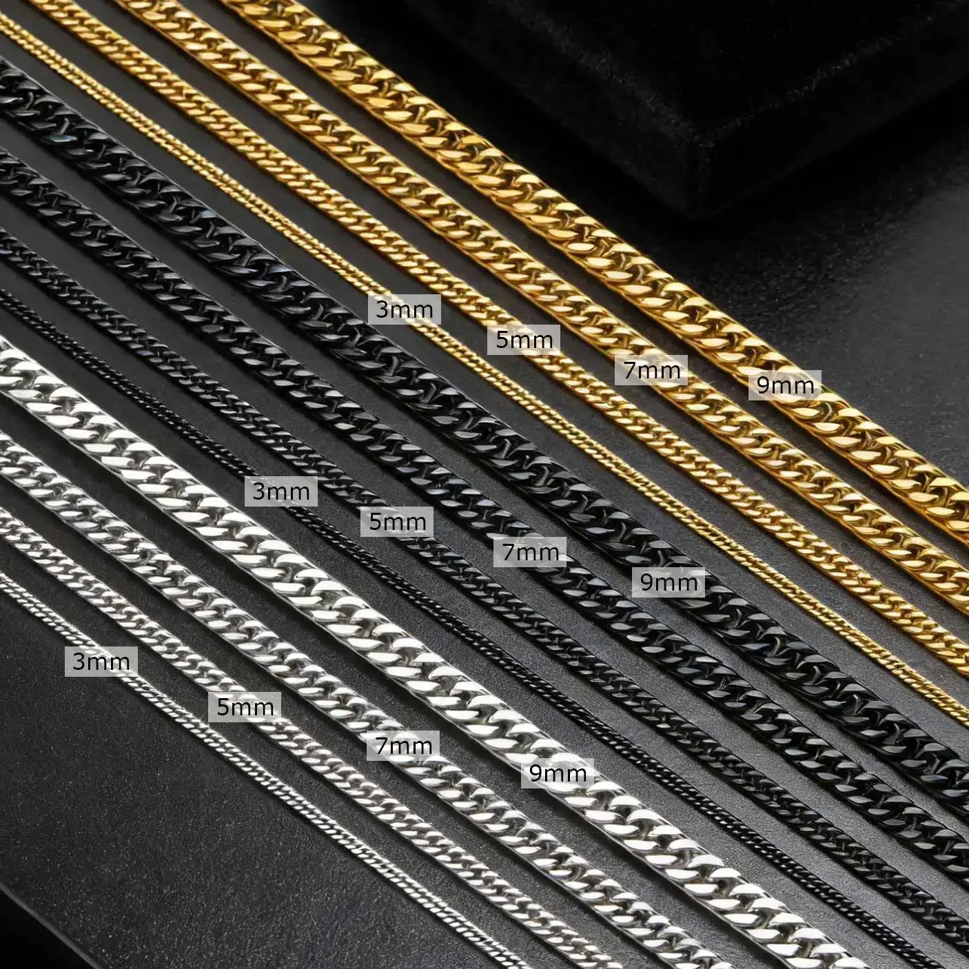 Collares de cadenas de eslabones cubanos de 3-9MM para hombres y mujeres, gargantillas de cuello de cadena de eslabones Miami de