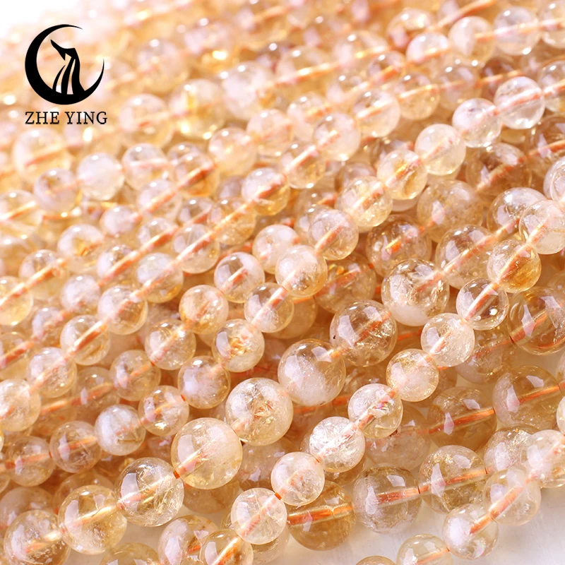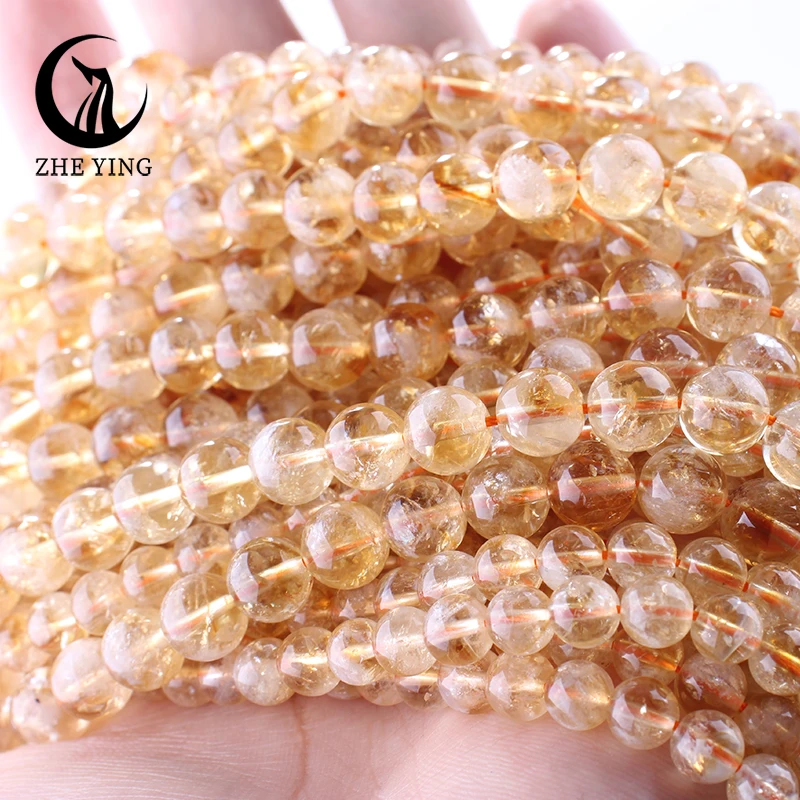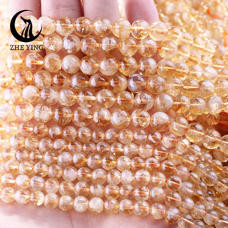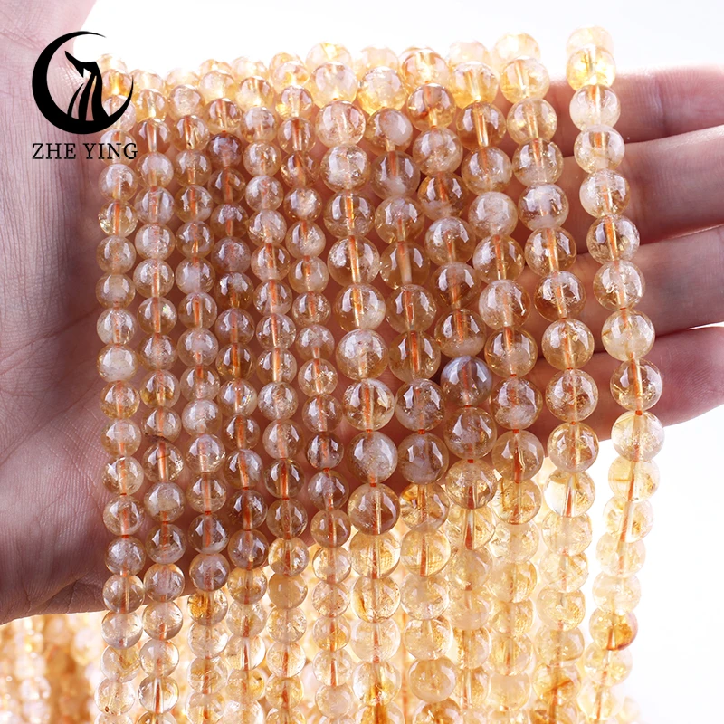 Cuentas de Citrino Natural de Zambia 100% para la Fabricación de Joyas, Cuentas Redondas de Piedras Preciosas para Hacer Pulseras y Collares, 15 Pulgadas