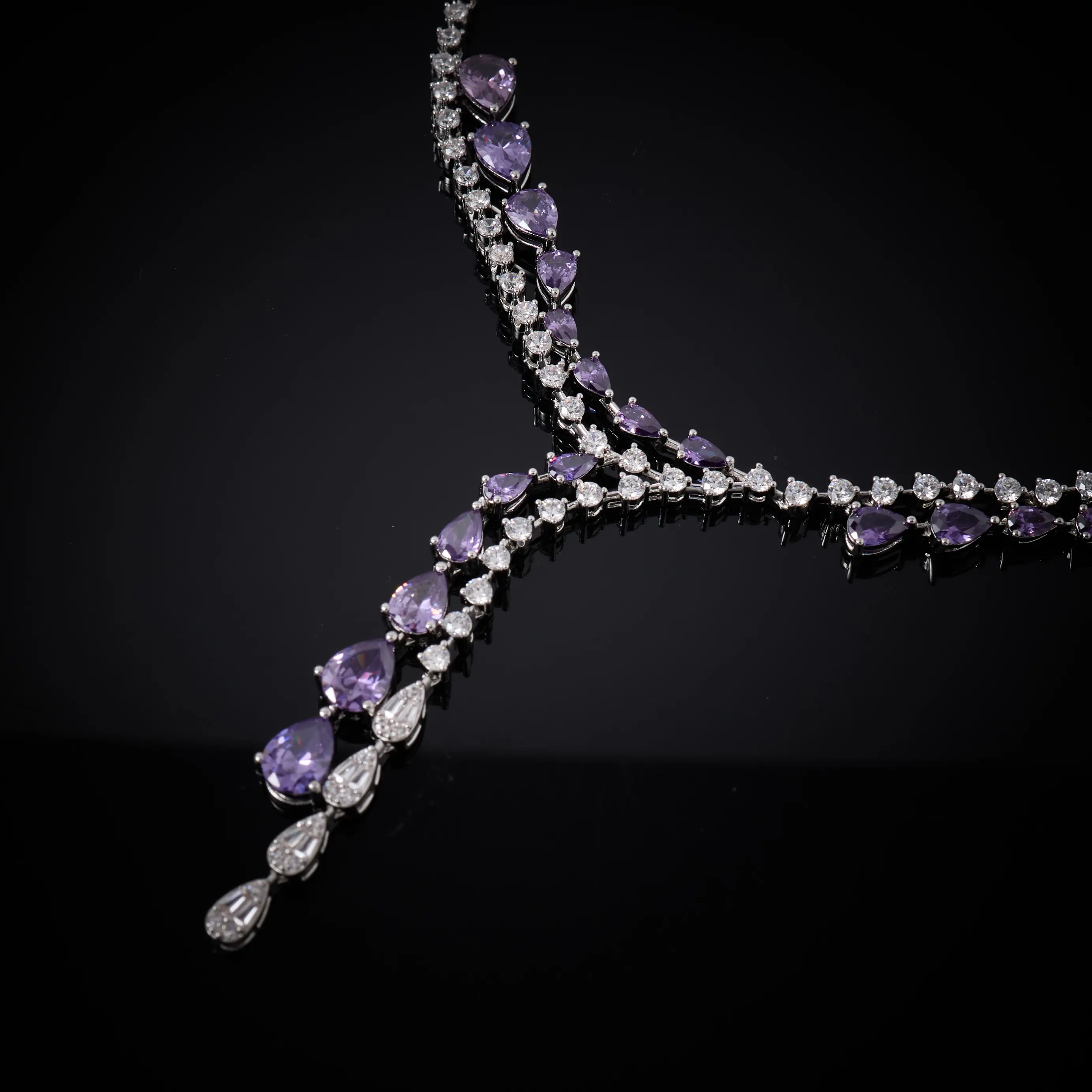 EN JEWELIFE, Color de lujo, Zirconia cúbica amarilla elegante, conjunto de joyería rosa de alta calidad, conjuntos elegantes para mujer, collares, tendencia 00086