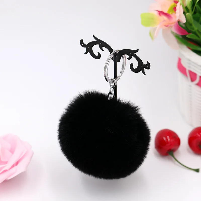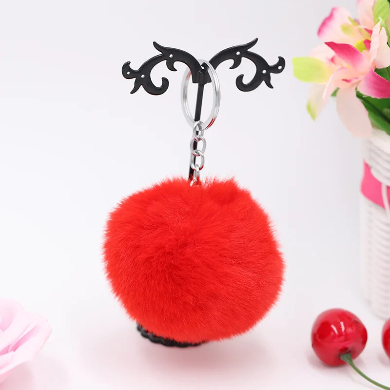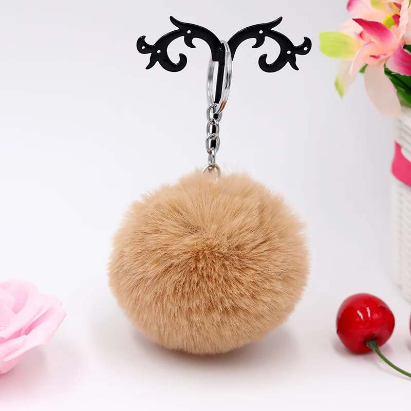 Llavero de bola de piel de conejo esponjosa para mujer, pompón de colores dulces, llavero de piel de conejo Artificial, llavero de bolsa de coche, 8CM