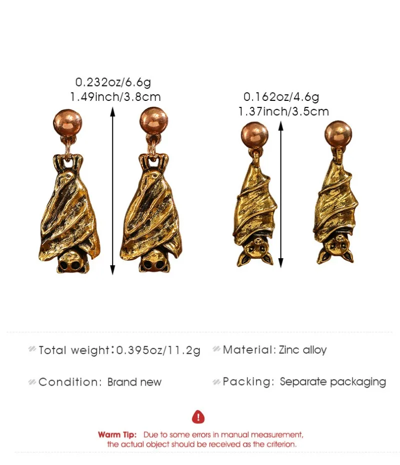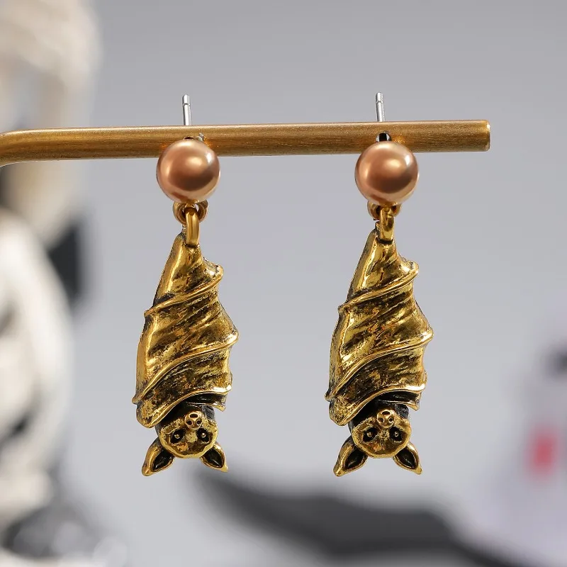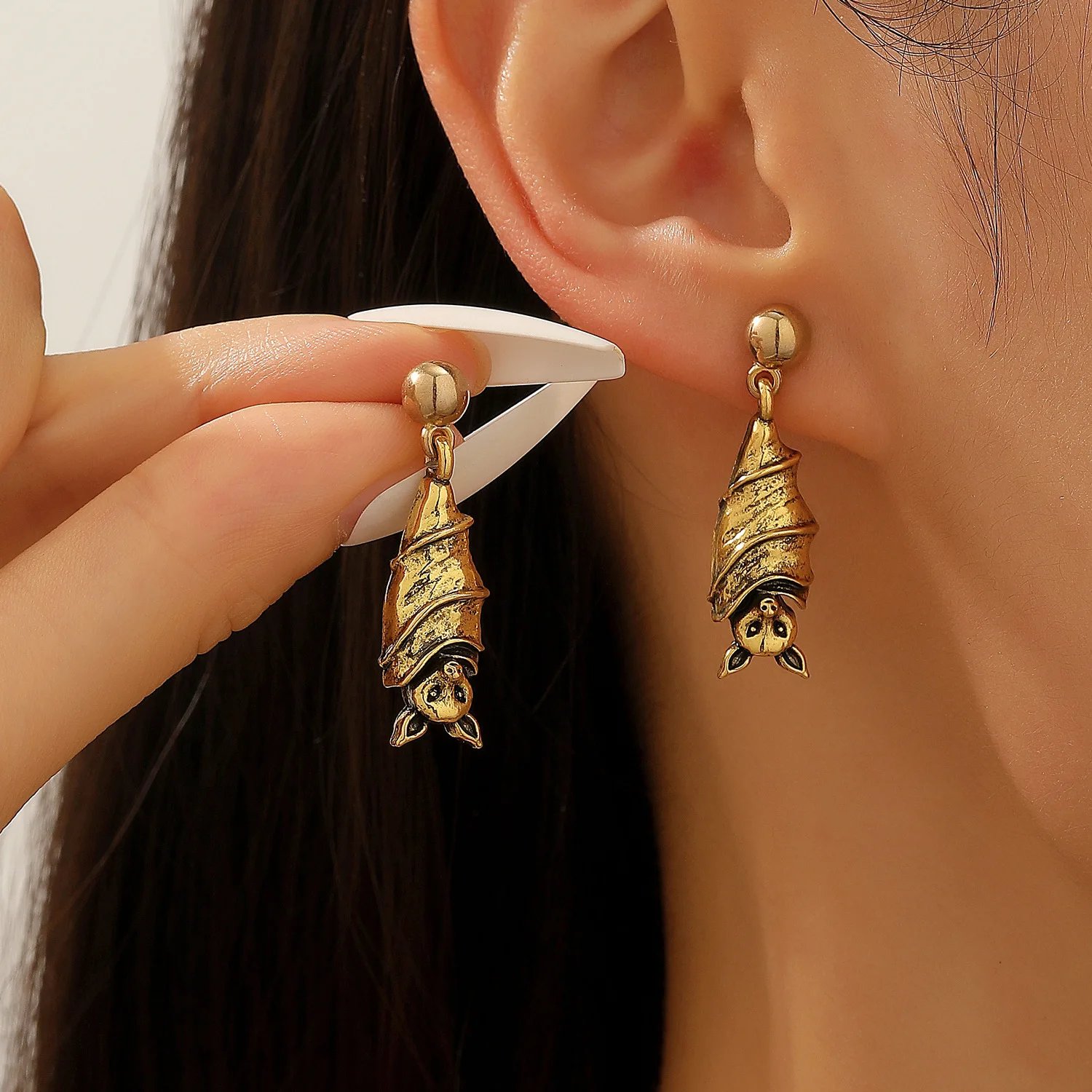 Pendientes con colgante de murciélago con personalidad oscura Retro, regalos de fiesta de Halloween para mujer a la moda, accesorios de joyería de moda