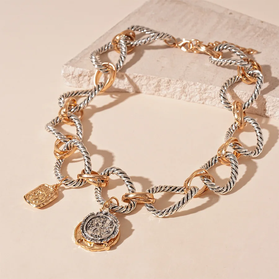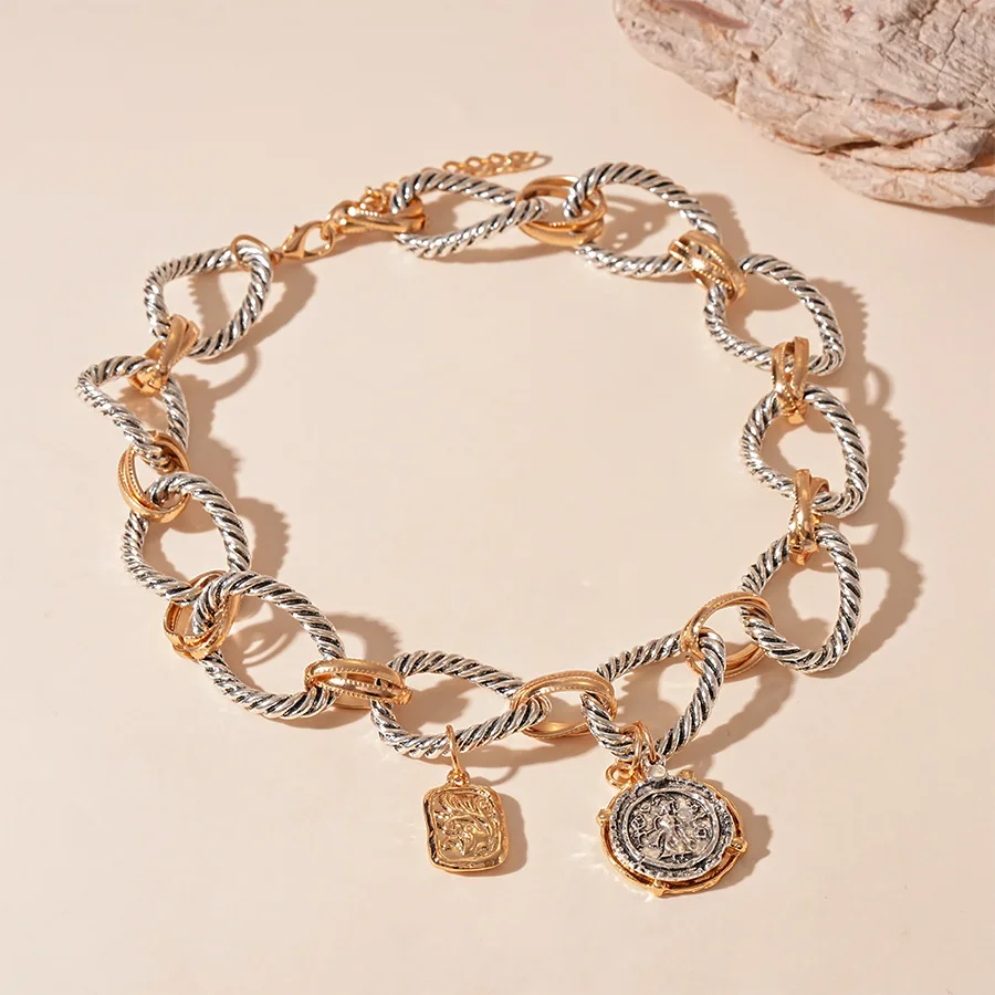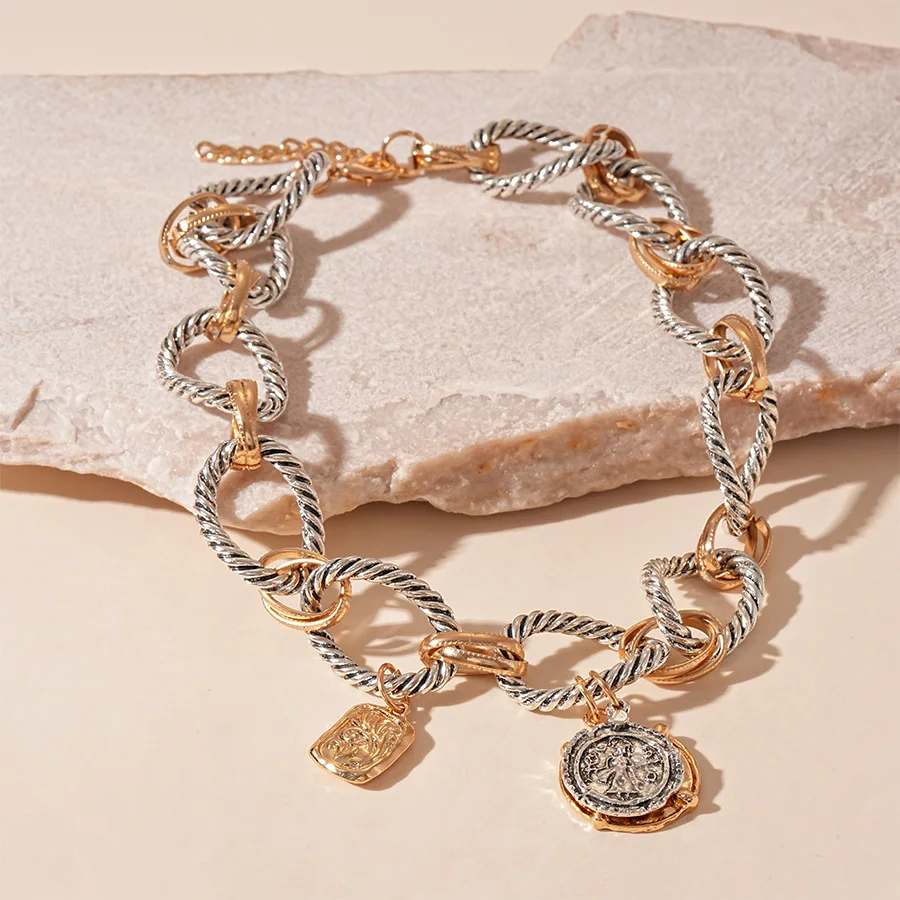 ZAA-collar para mujer con colgante de moneda pesada exagerada, cadena de clavícula torcida, joyería de fiesta, accesorios llamativos