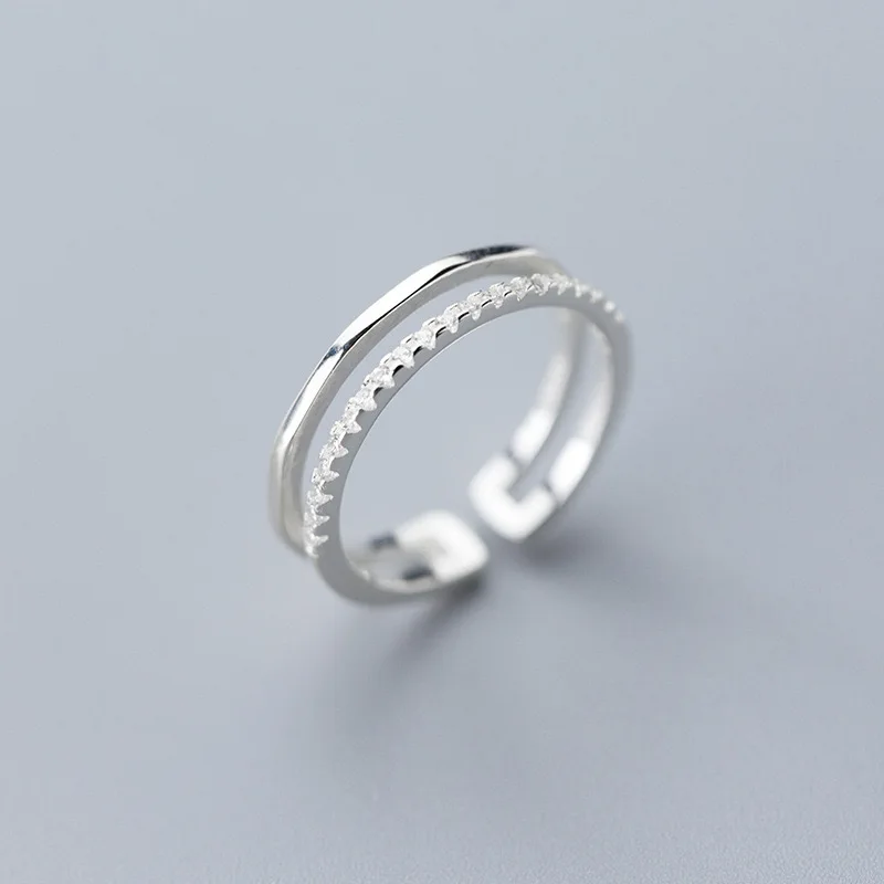 925 anillos de plata esterlina para mujeres y hombres, pareja minimalista hecha a mano, anillo de circón doble, joyería de fiesta, regalo para prevenir alergias