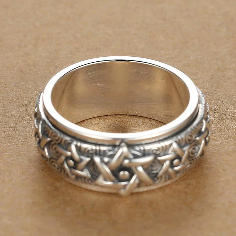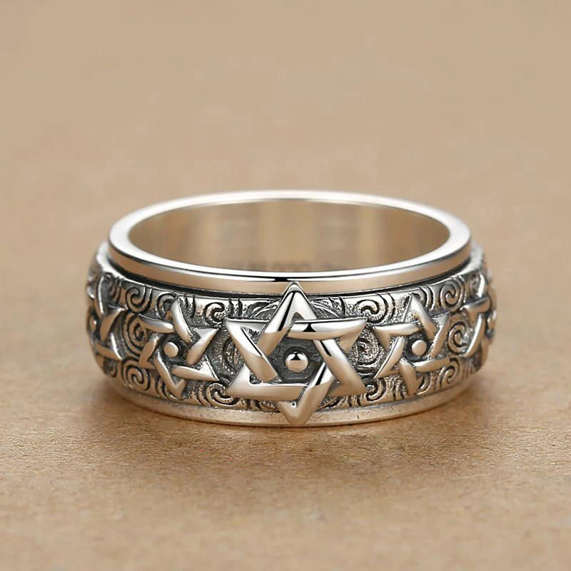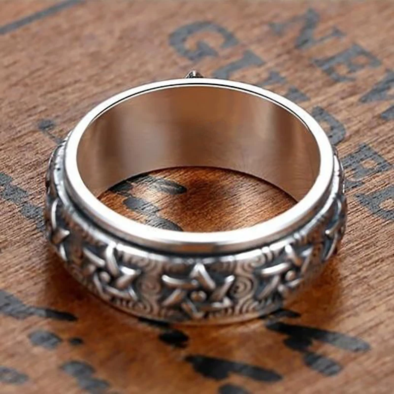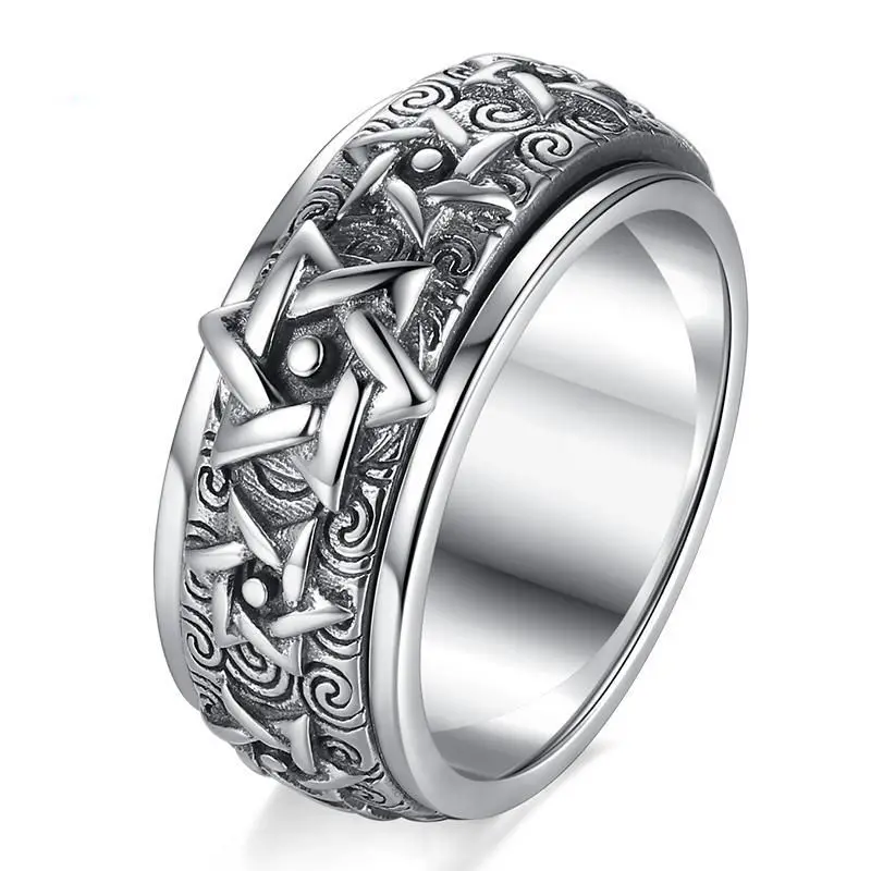 Anillo giratorio HX de Color plateado para hombre, Plata de Ley Retro dominante, estrella de seis puntas, versión amplia, dedo índice tailandés cerrado