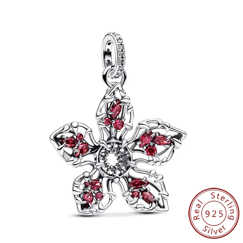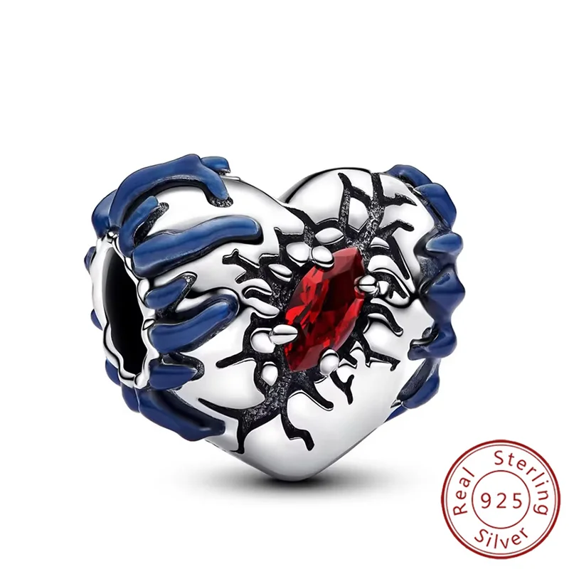 Colgante de personaje de monstruo de plata 925, cuentas de corazón rojo que brillan en la oscuridad, compatible con Pulsera Original, joyería fina DIY, regalo para mujer