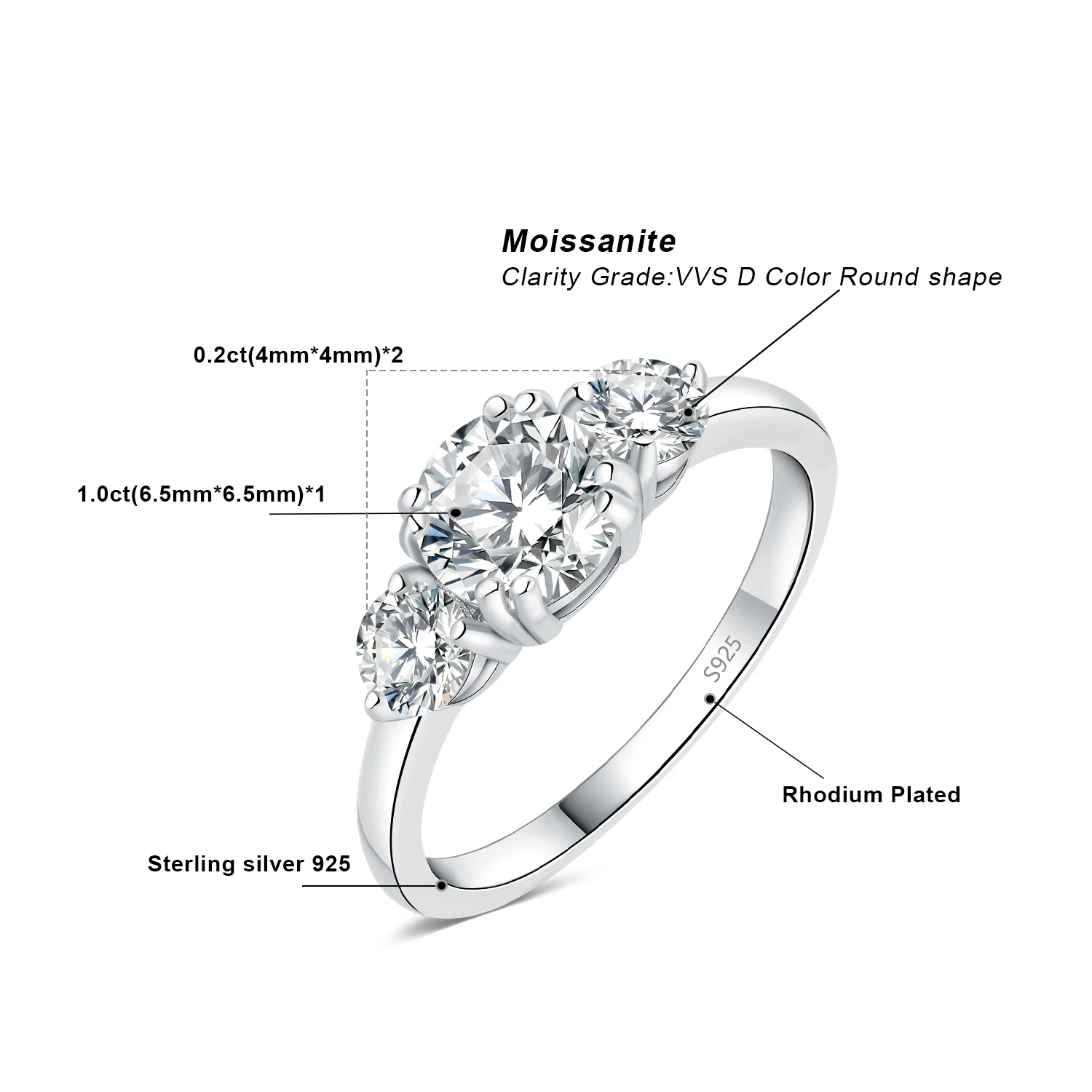 √ HIGH-QUALITY 1.4CT MOISSANITE WHITE GOLD PLATED 925 STERLING SILVER 3 STONE PROMISE RING : Engagement 3 stone ring for women is made of solid S925 sterling silver, known for strength, brightness and shine. Sterling silver in our womens wedding ring is tarnish-resistant, ensuring there is no tarnish residue on the skin. Rhodium plating provides a long-lasting luster and makes 925 sterling silver women tarnish resistant! Completely hypoallergenic, allergy-free, nickel-free, lead-free, and cadmium free to prevent irritation.