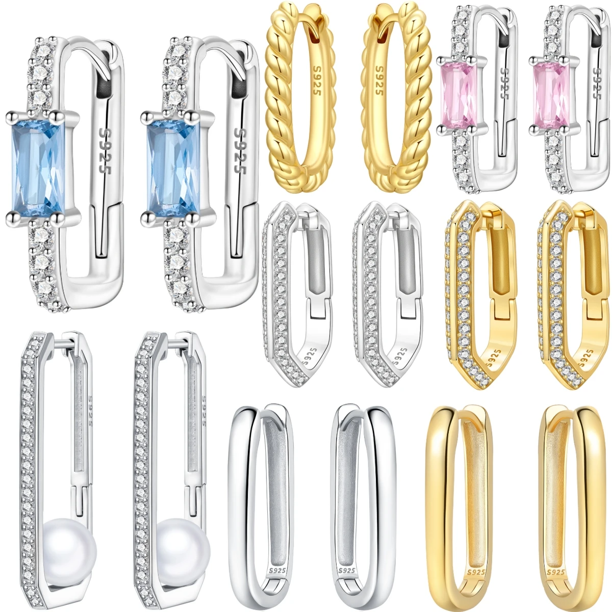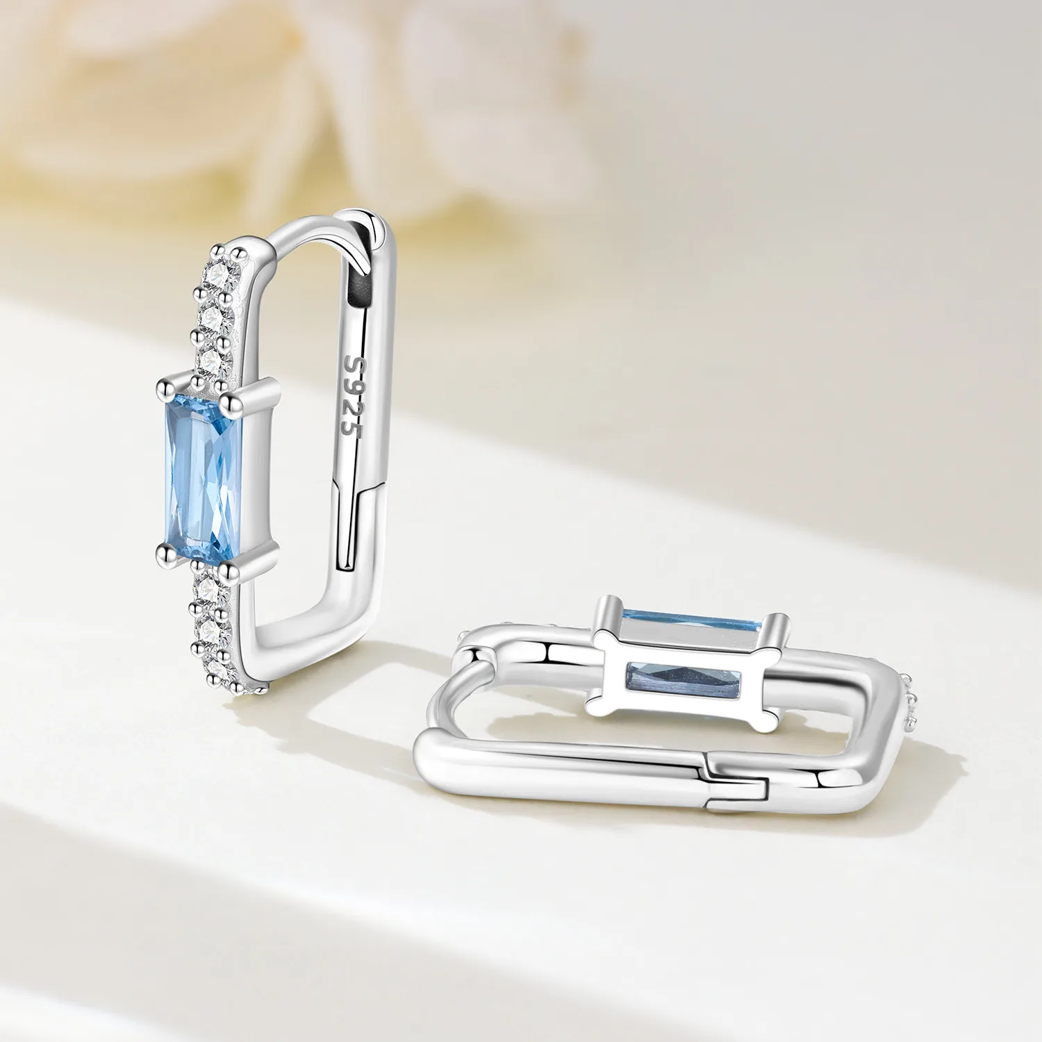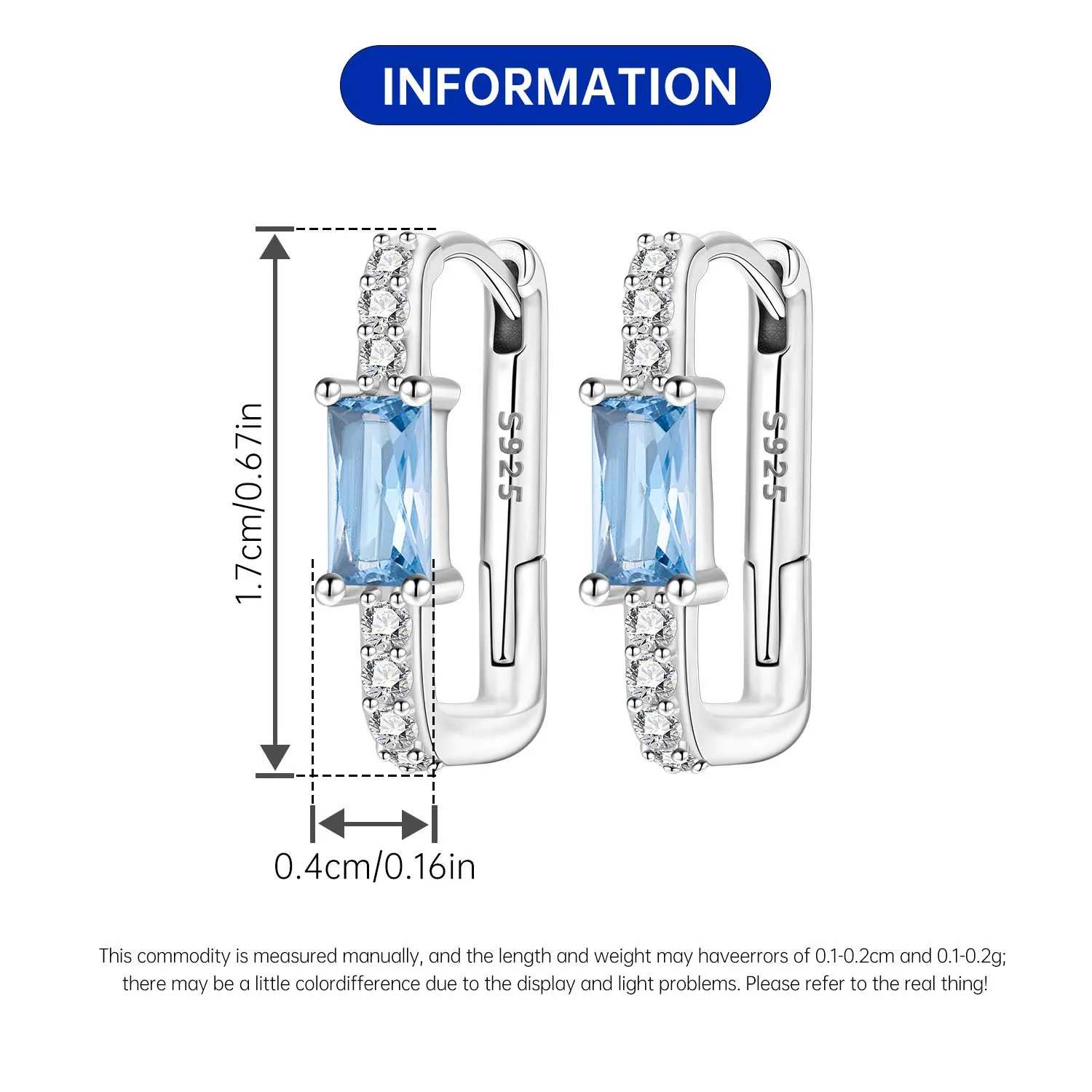 Orstarry Original Plata de Ley 925 diseño minimalista pendientes de circón azul pendientes de aro para mujer regalos de joyería de aniversario