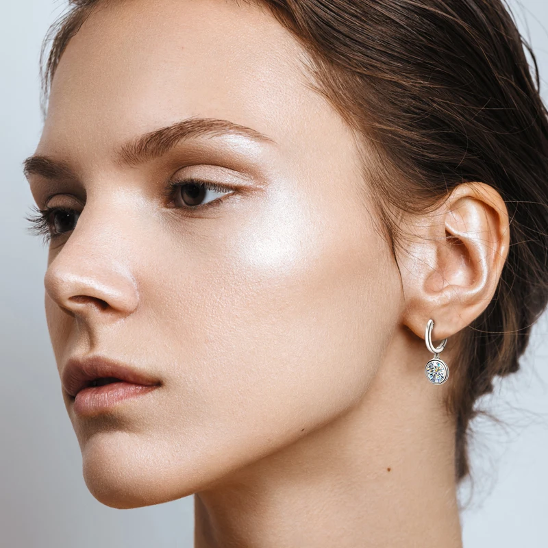 Pendientes colgantes de aro de moissanita de oro de 14 quilates 1-3CT Plata de Ley 925 Color D VVS1 diamante señoras citas fiesta joyería de moda regalo