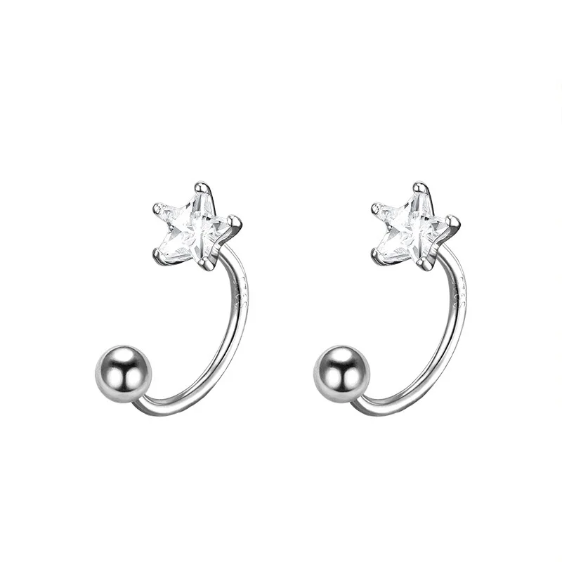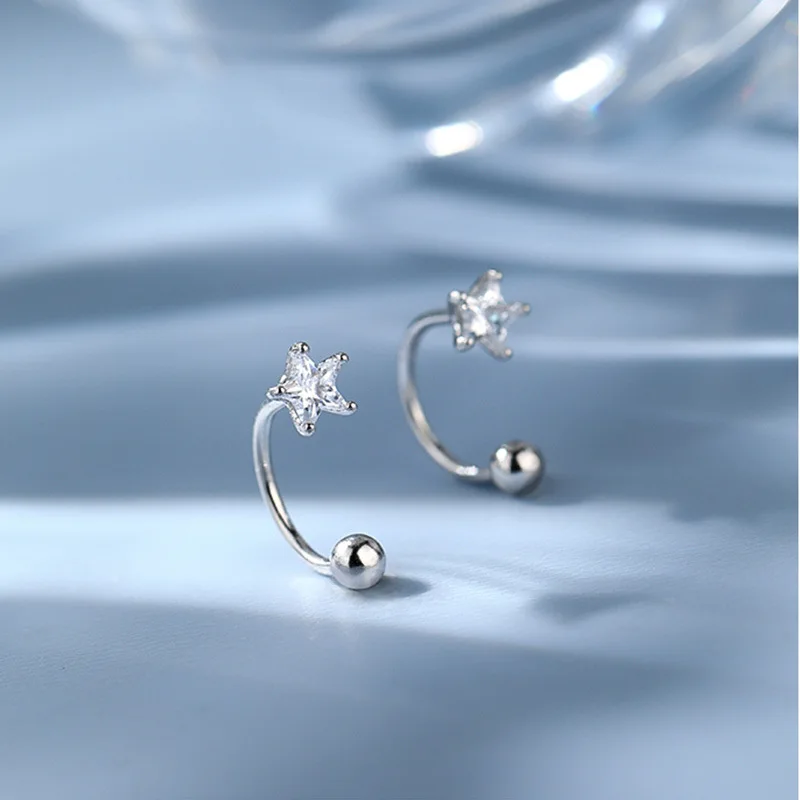 Pendientes pequeños y frescos para mujer, aretes con personalidad, estrella de plata 925, cristal Flash, verano, 2022