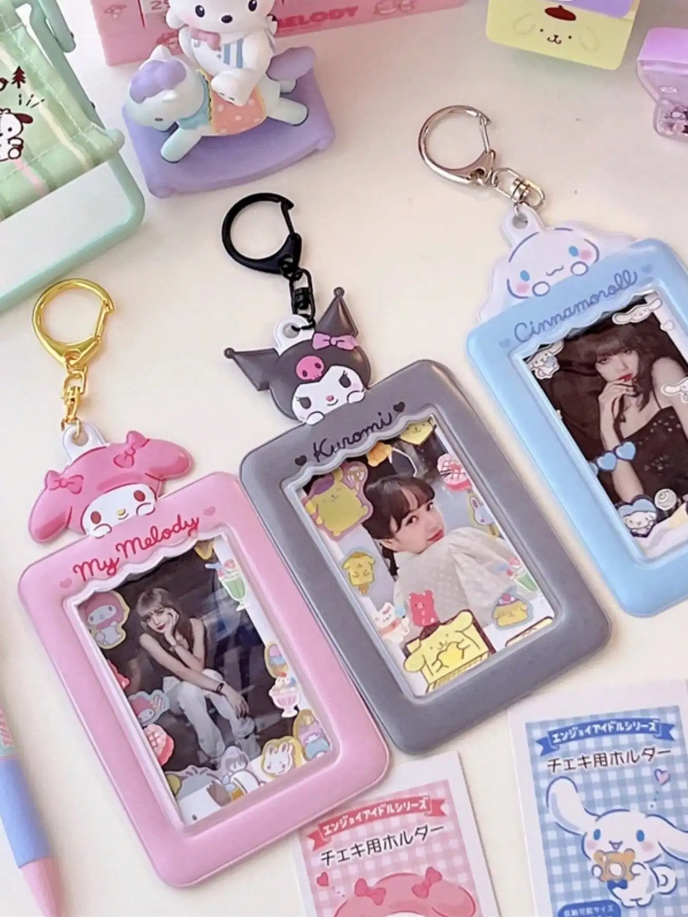 1 unidad Llavero Portatarjetas Hello Kitty, Cinnamoroll, Kuromi, Melody, Estuche para Tarjetas Kpop, Colgante para Bolso, Regalo