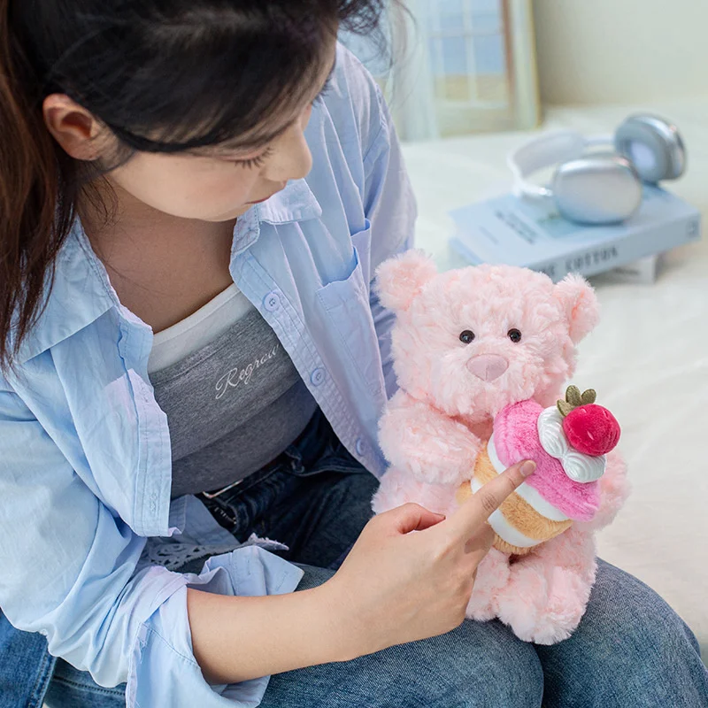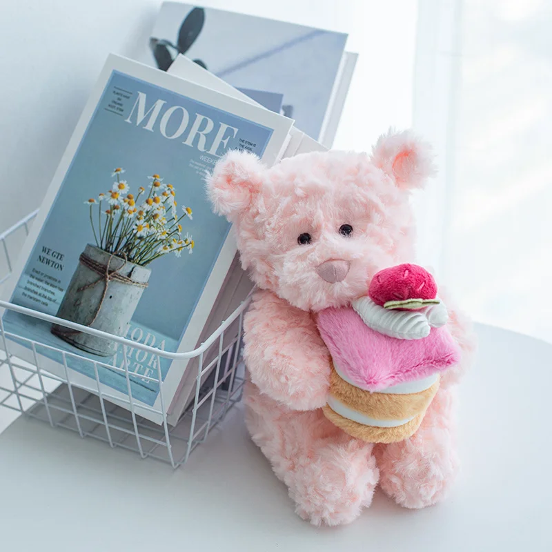 Oso de peluche Kawaii de 25cm/9,84 pulgadas, pastel de cumpleaños rosa, juguete de peluche, regalo de Navidad para niños, muñeco de oso suave para celebración de cumpleaños