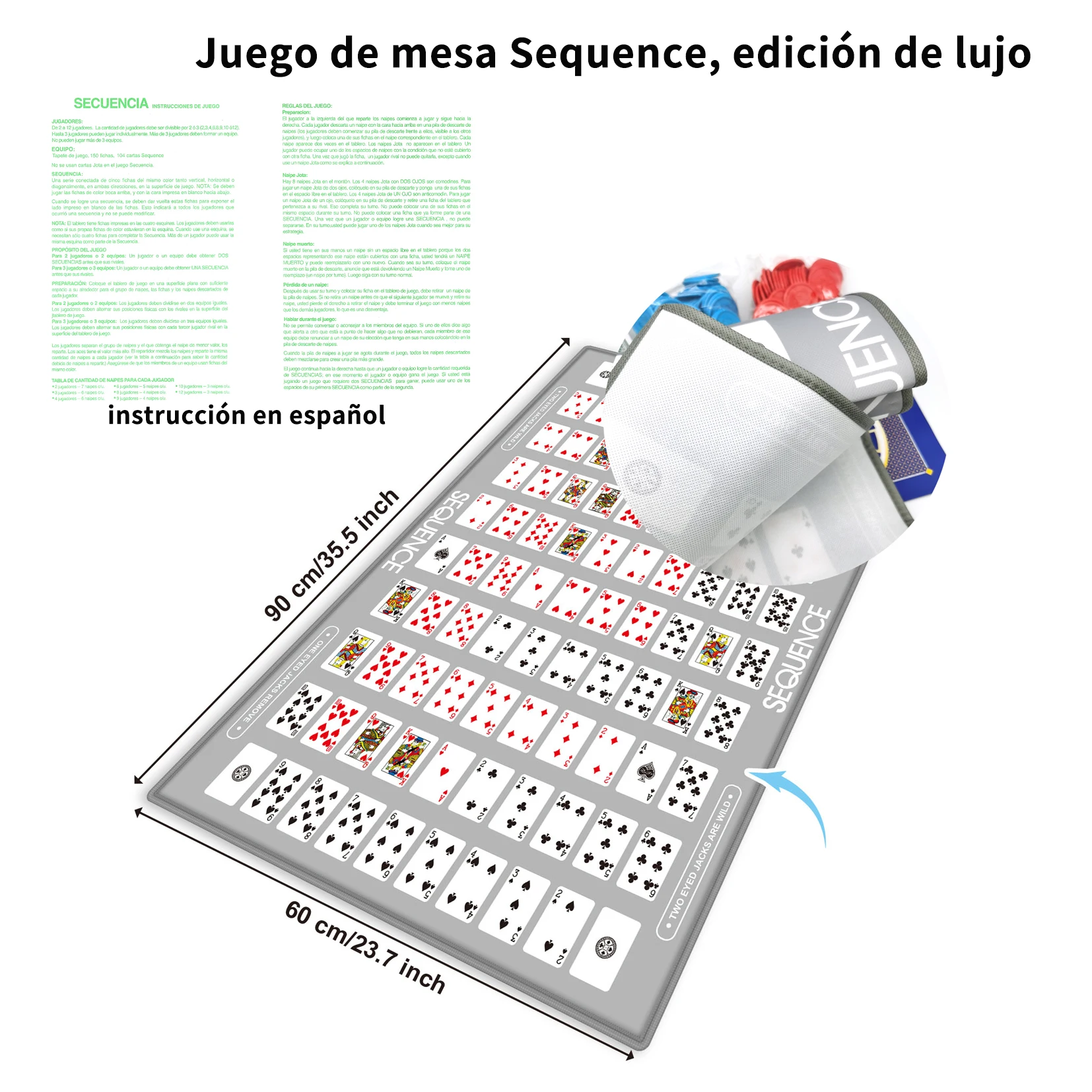 Juego de mesa de secuencia, juego de cartas, edición de lujo, tapete de juego plegable