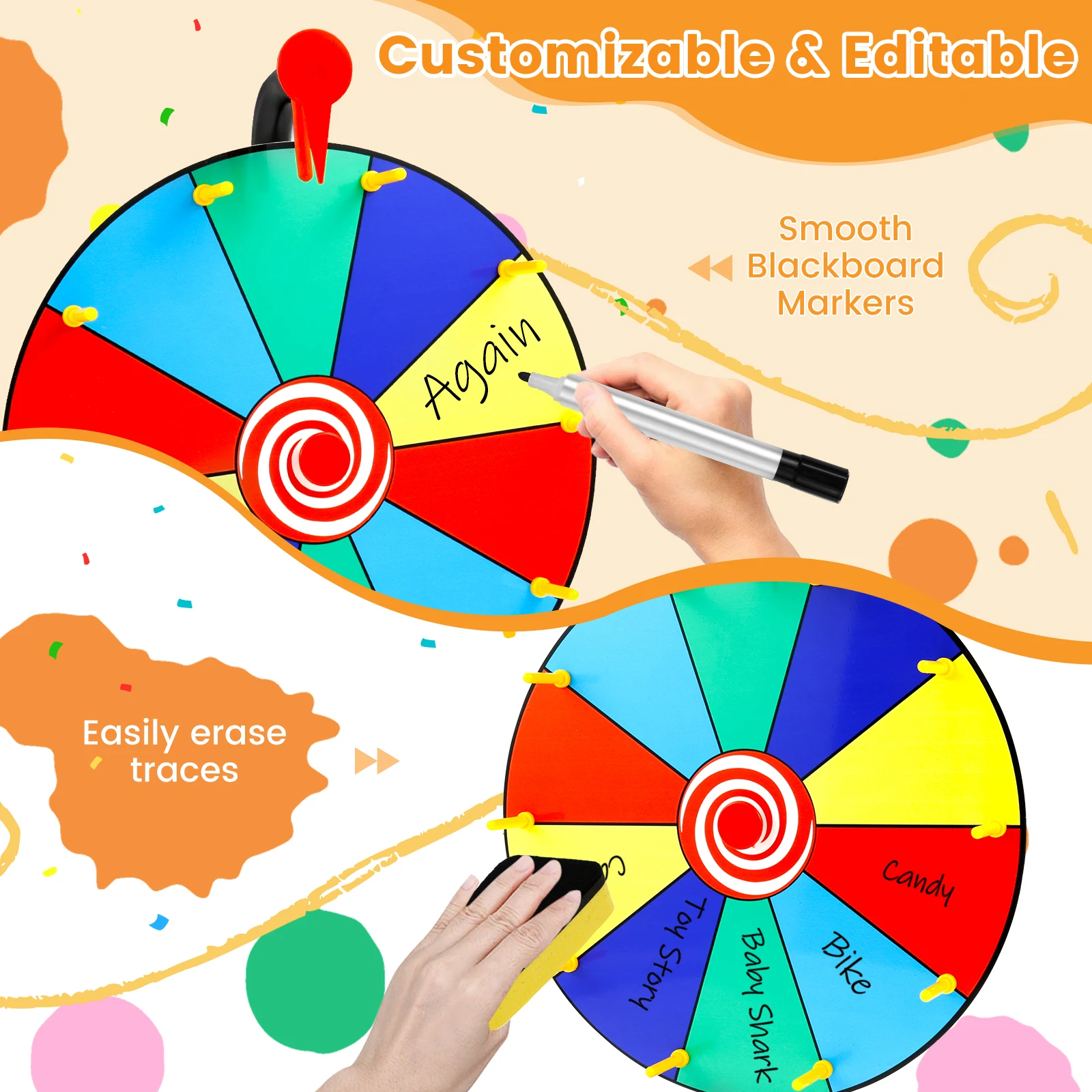 Rueda de premio, rueda giratoria interactiva DIY con borrador de tablero y bolígrafo, Spinner de ruleta de mesa borrable para fiesta de Carnaval de espectáculo en casa