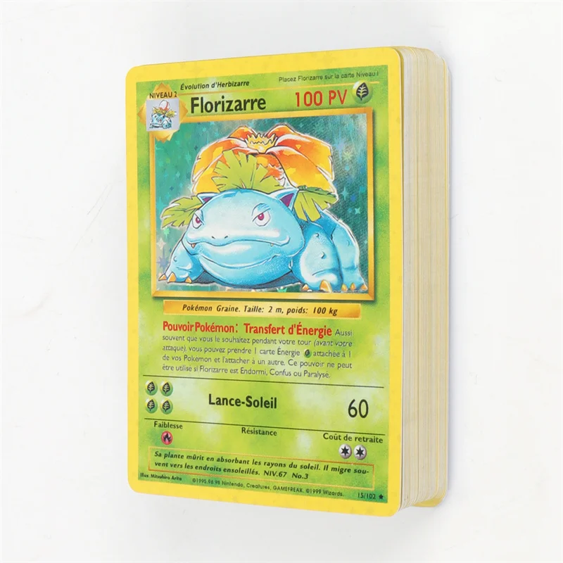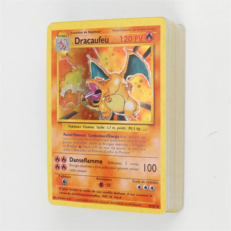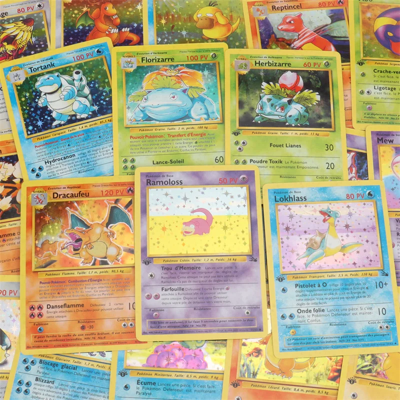 Tarjetas Flash de aluminio de Pokémon, 1a edición francesa, Pikachu, Charizard, Blastoise, Venusaur, Mewtwo, tarjetas de juego de colección, 151 unids/caja