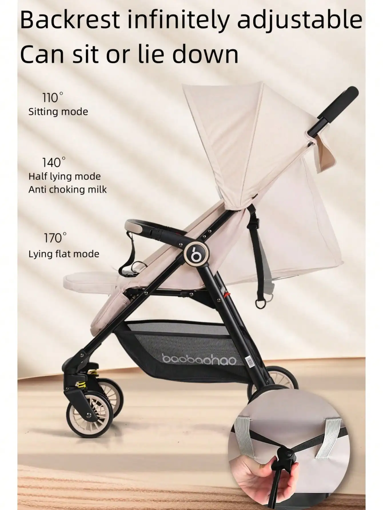 1 cochecito de bebé ligero negro pesa solo 4,7 kg, conveniente para aviones, trenes y automóviles, adecuado para uso doméstico y ocupaciones.