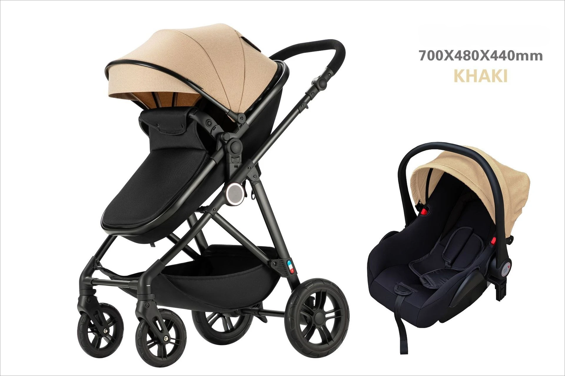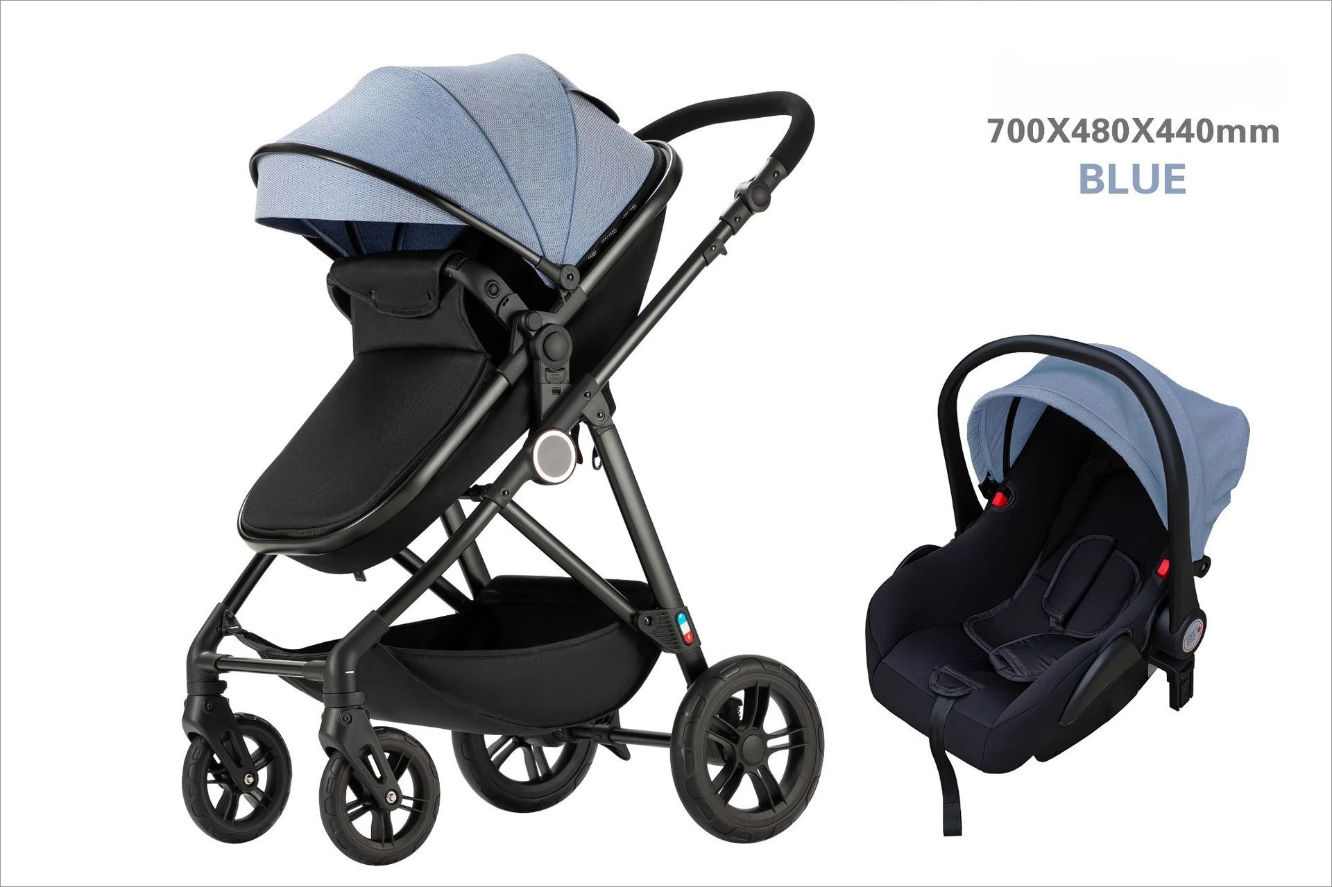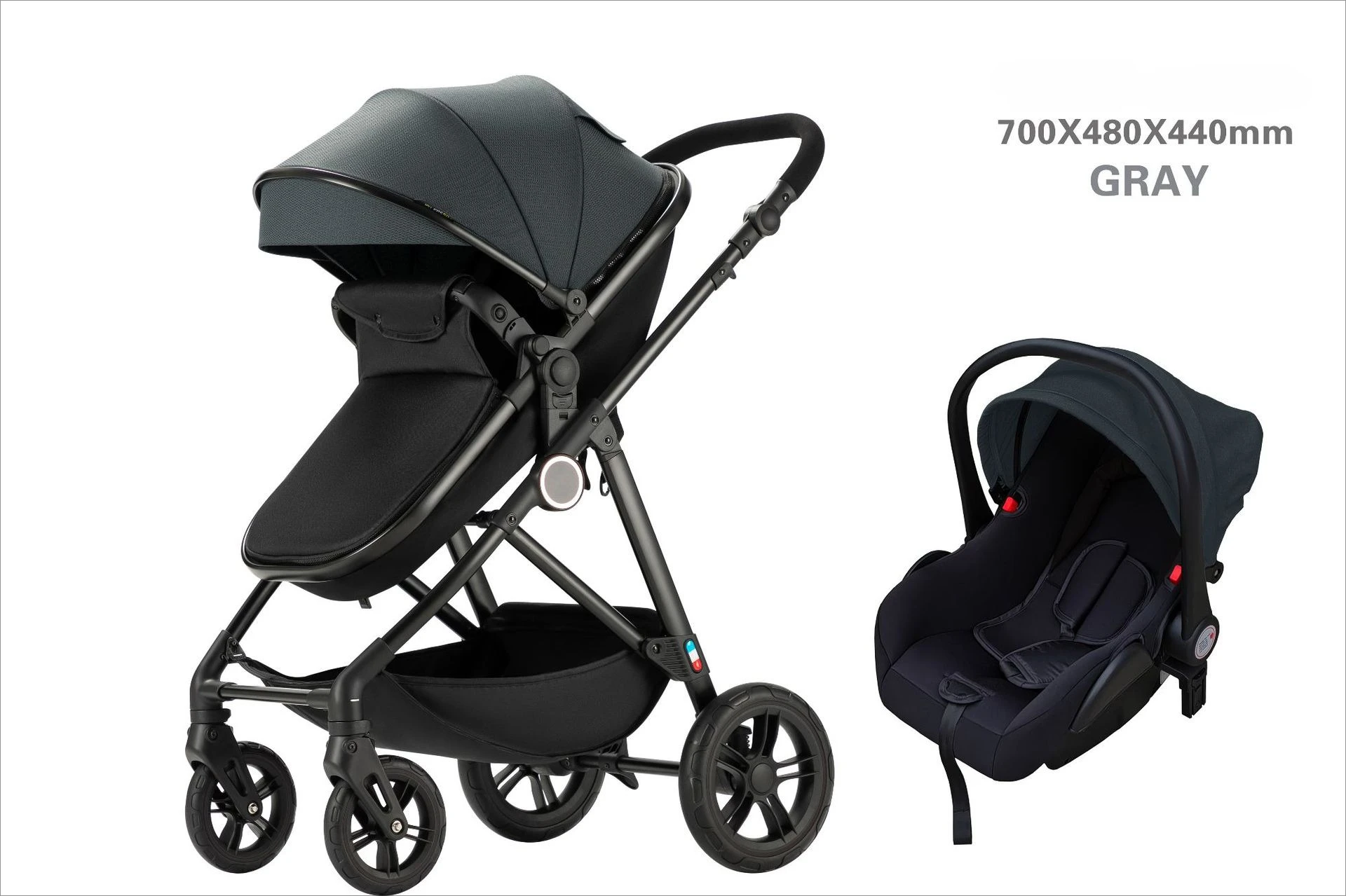 Cochecito de bebé que absorbe los golpes con asiento de coche, cochecito de bebé 3 en 1, cochecito de bebé de cuatro ruedas bidireccional, ligero, plegable y de alta vista