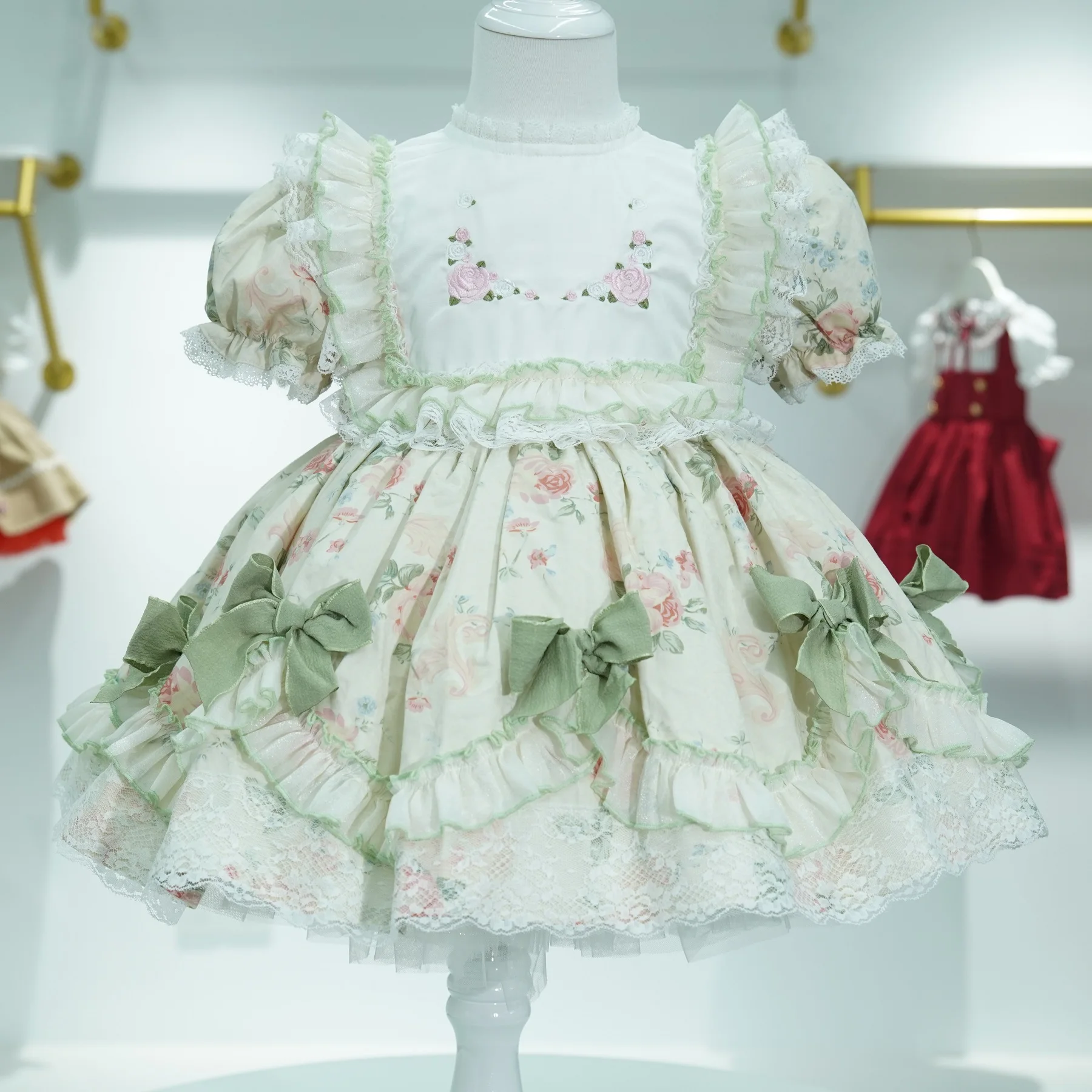 Bebé niña verano Rosa bordado turco Vintage princesa Rosa vestido Floral para cumpleaños vacaciones fiesta Eid fotografía B393