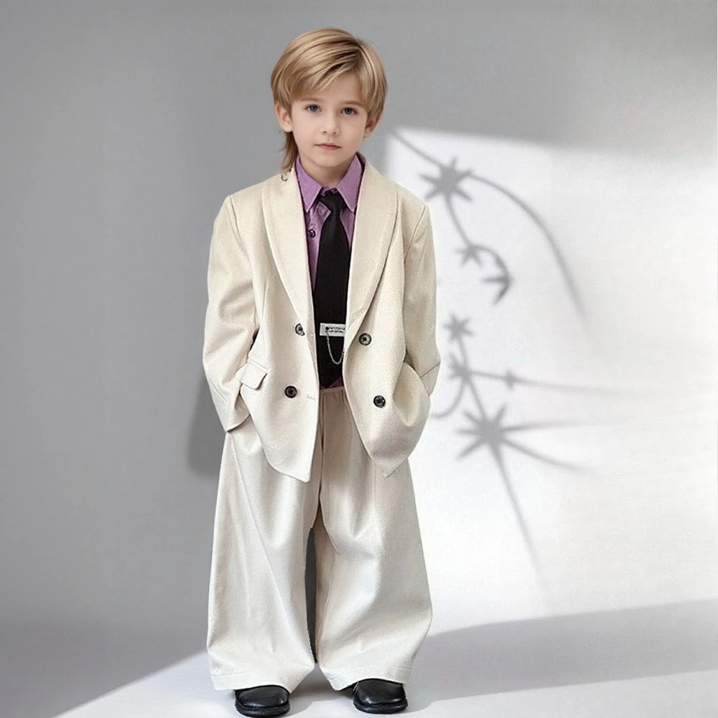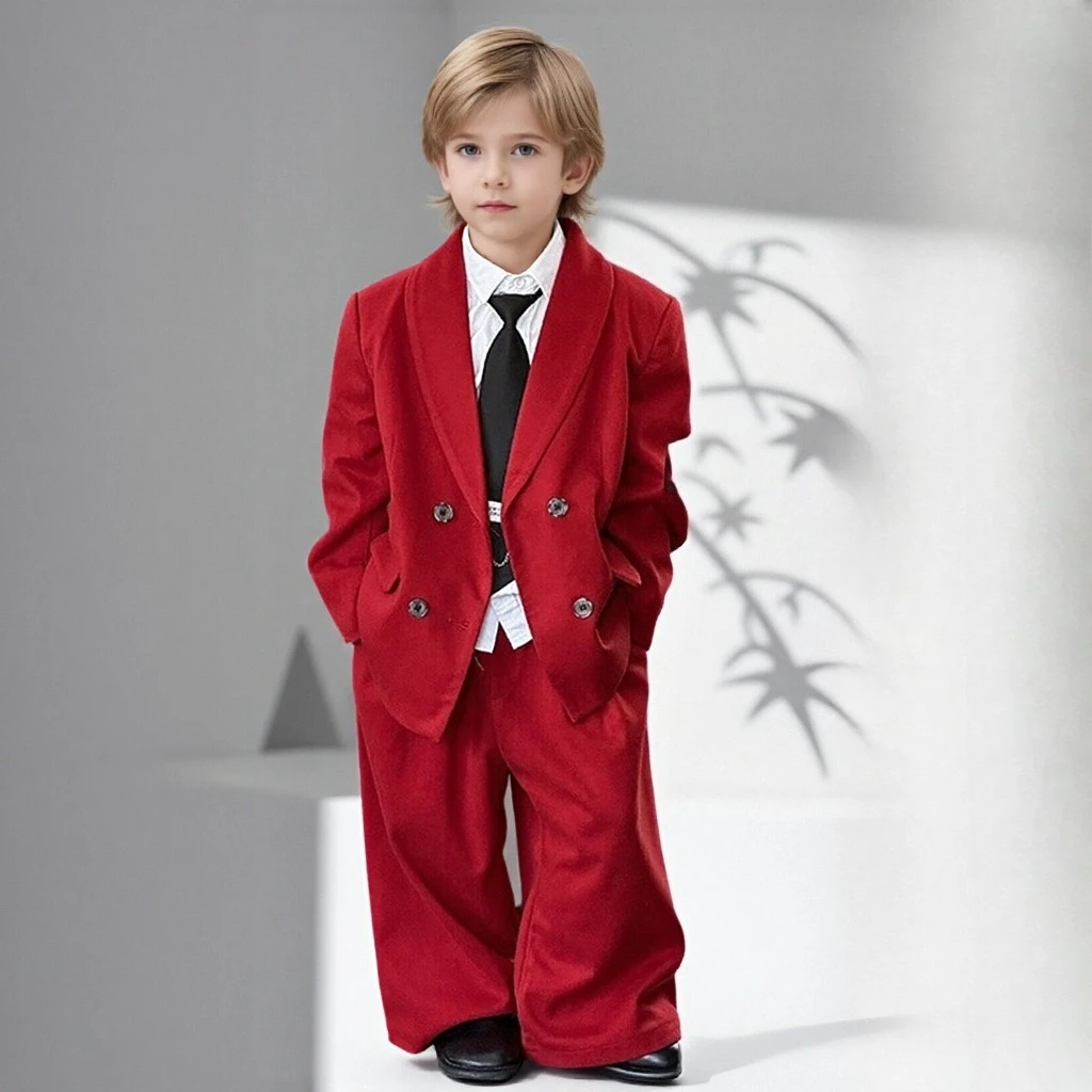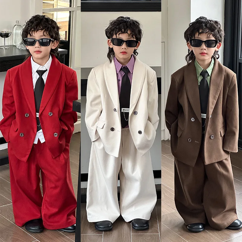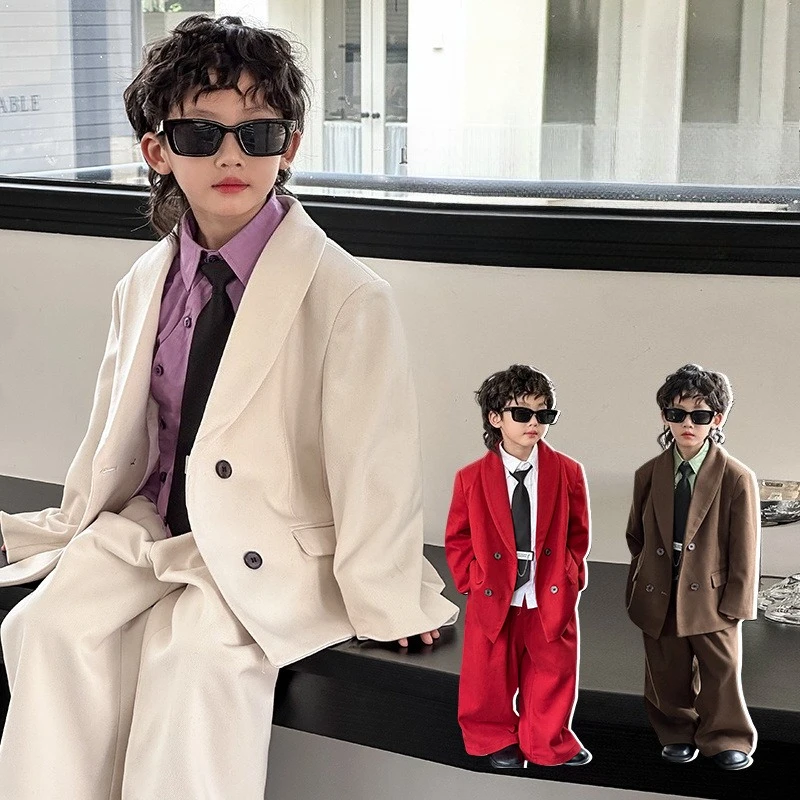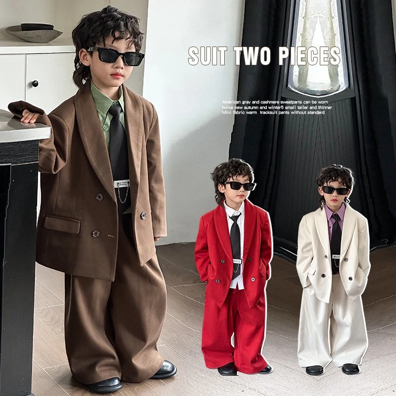 Conjunto de traje de lana para niños adolescentes, chaqueta de Tweed, pantalones, 2 uds., ropa Formal para niños, traje informal, disfraces de fiesta de boda y Navidad, otoño e invierno