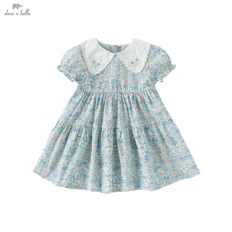 Dave Bella vestido de verano para niños nuevo suave dulce lindo niñas bebé algodón princesa vestido estampado Floral elegante fiesta DB 2251731