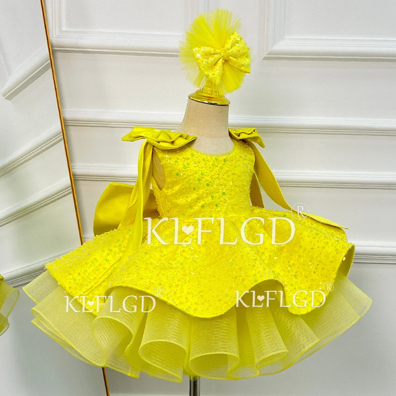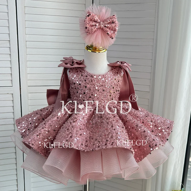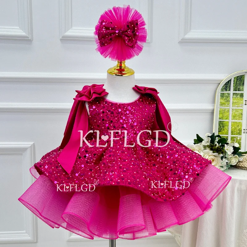 Nuevo vestido de desfile de belleza para niños pequeños, vestido rojo de mariposa con lentejuelas, fiesta de cumpleaños de un año, bautismo, disfraz de Navidad para niñas