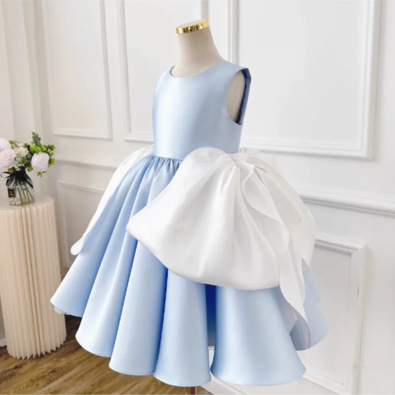 Vestido de princesa con lazo grande para niña, Vestido sin mangas para niño pequeño y adolescente, ropa para fiesta de cumpleaños y boda, 1-14 años