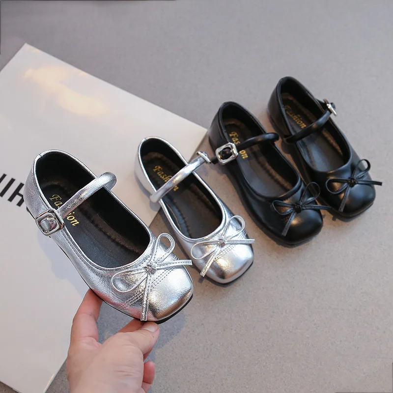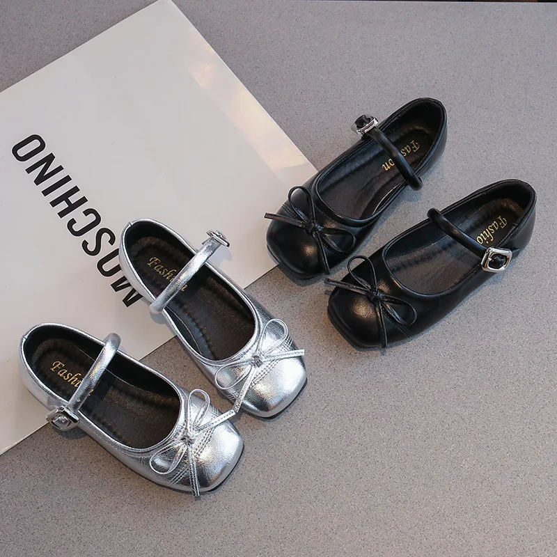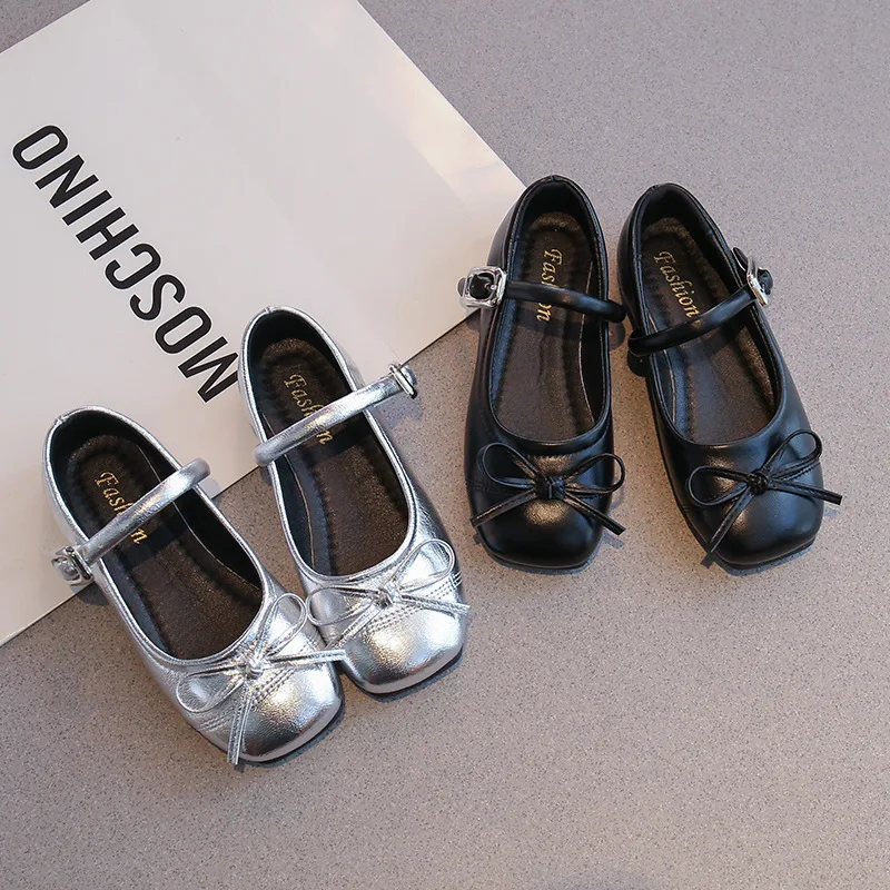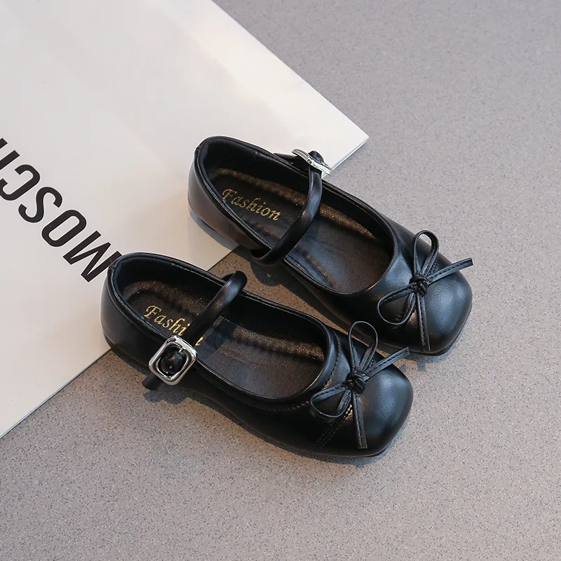 Zapatos de Cuero para Niñas, Primavera-Otoño 2026, Estilo Princesa, Mary Janes, Sencillos y Clásicos con Lazo, Tallas 26-37, Nuevos