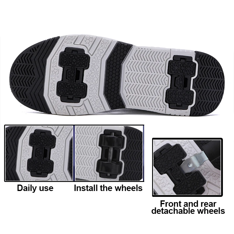 Zapatos de patín de 4 ruedas para niños y niñas, zapatillas de deporte con poleas, tobogán informal para deportes al aire libre, zapatos para caminar para estudiantes de escuela