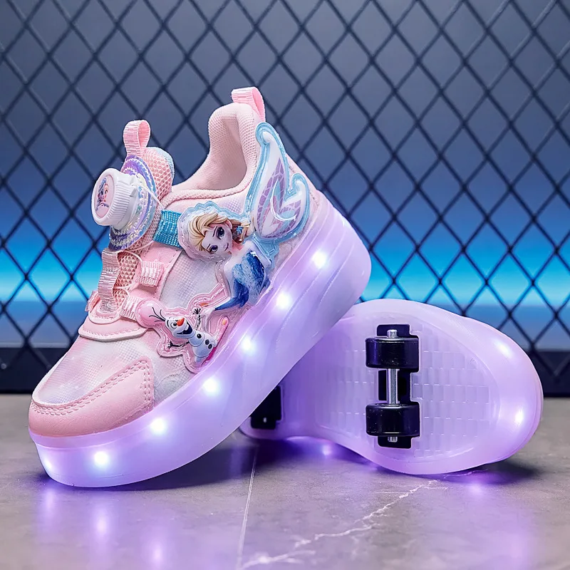 Zapatos informales para niños, zapatos de skate con luz Led, princesa de dibujos animados, cuero PU para niños, zapatos azules y rosas, talla 28-37