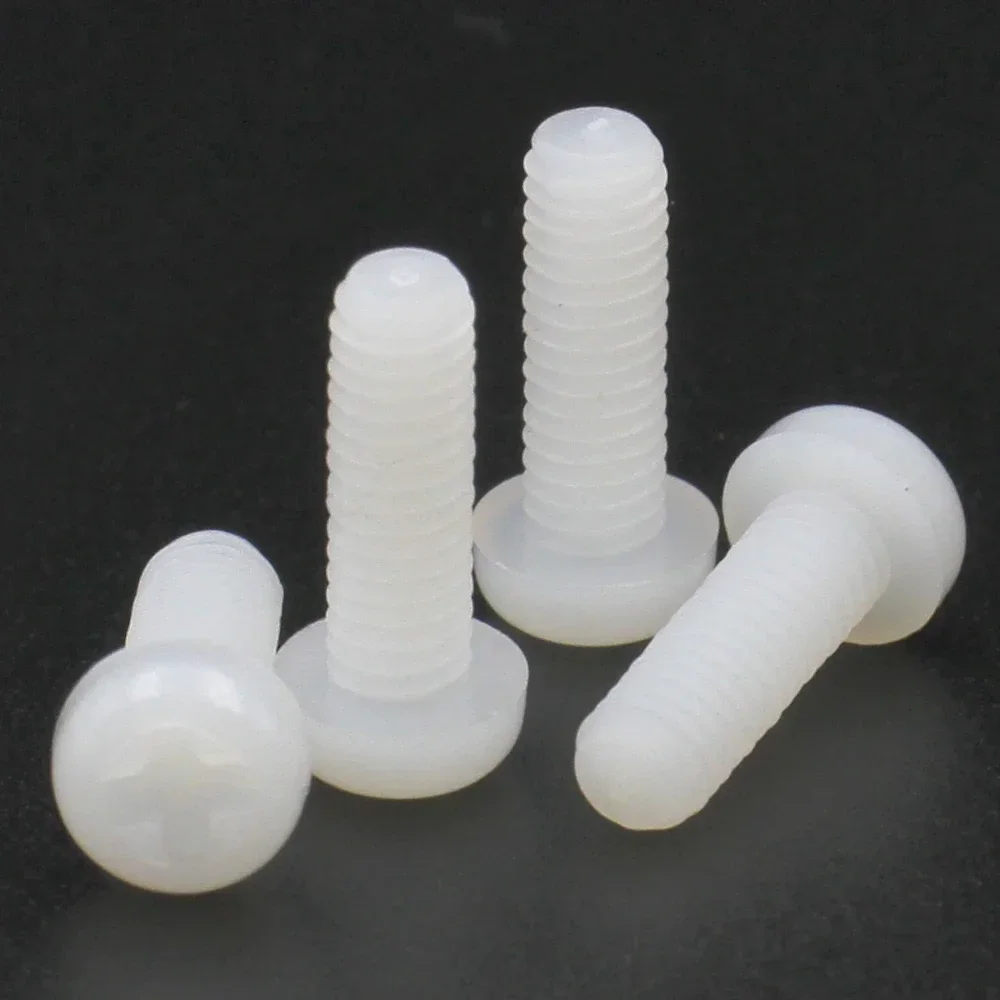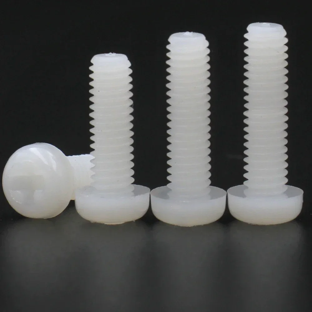 20/50/100 Uds M2 M2.5 M3 M4 M5 M6 M8 rosca métrica negro o blanco Nylon plástico Cruz Phillips Pan tornillo de cabeza redonda