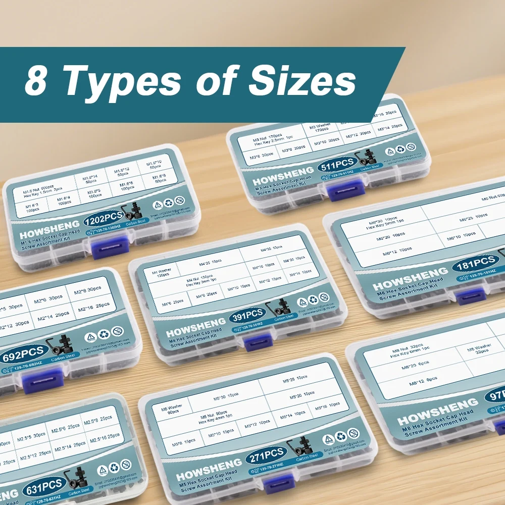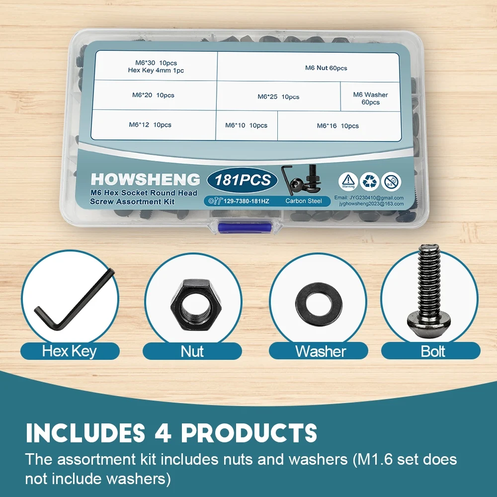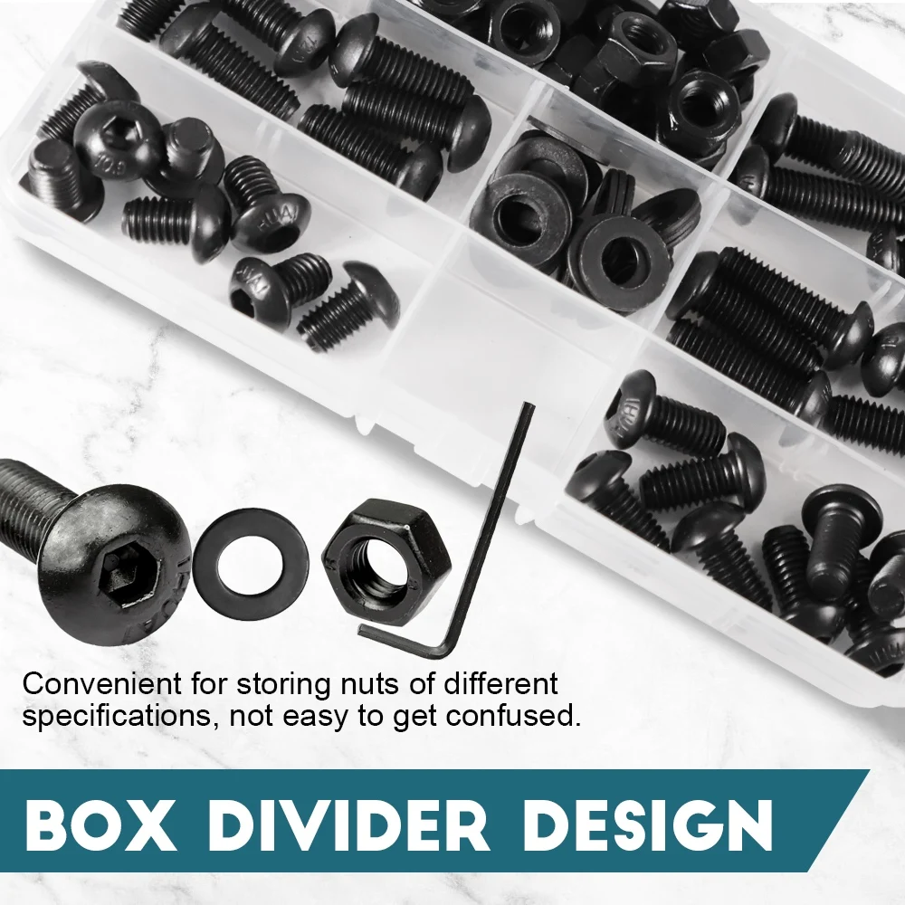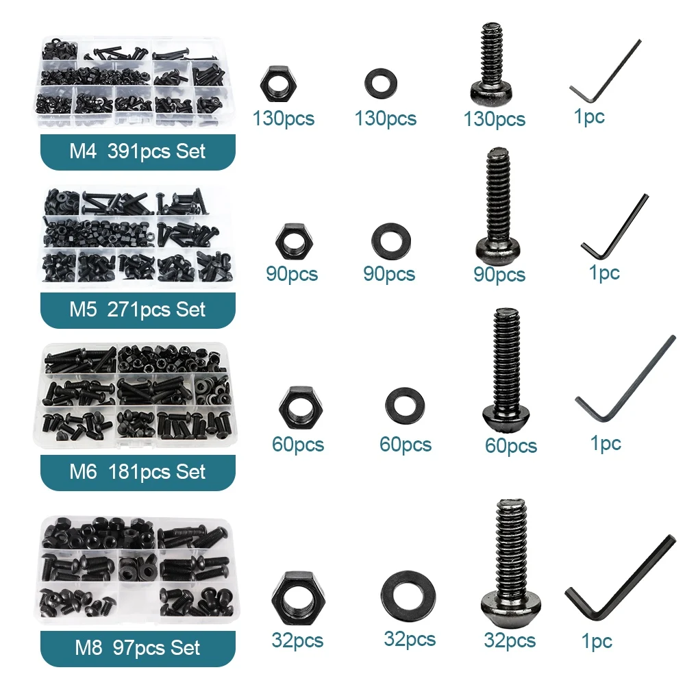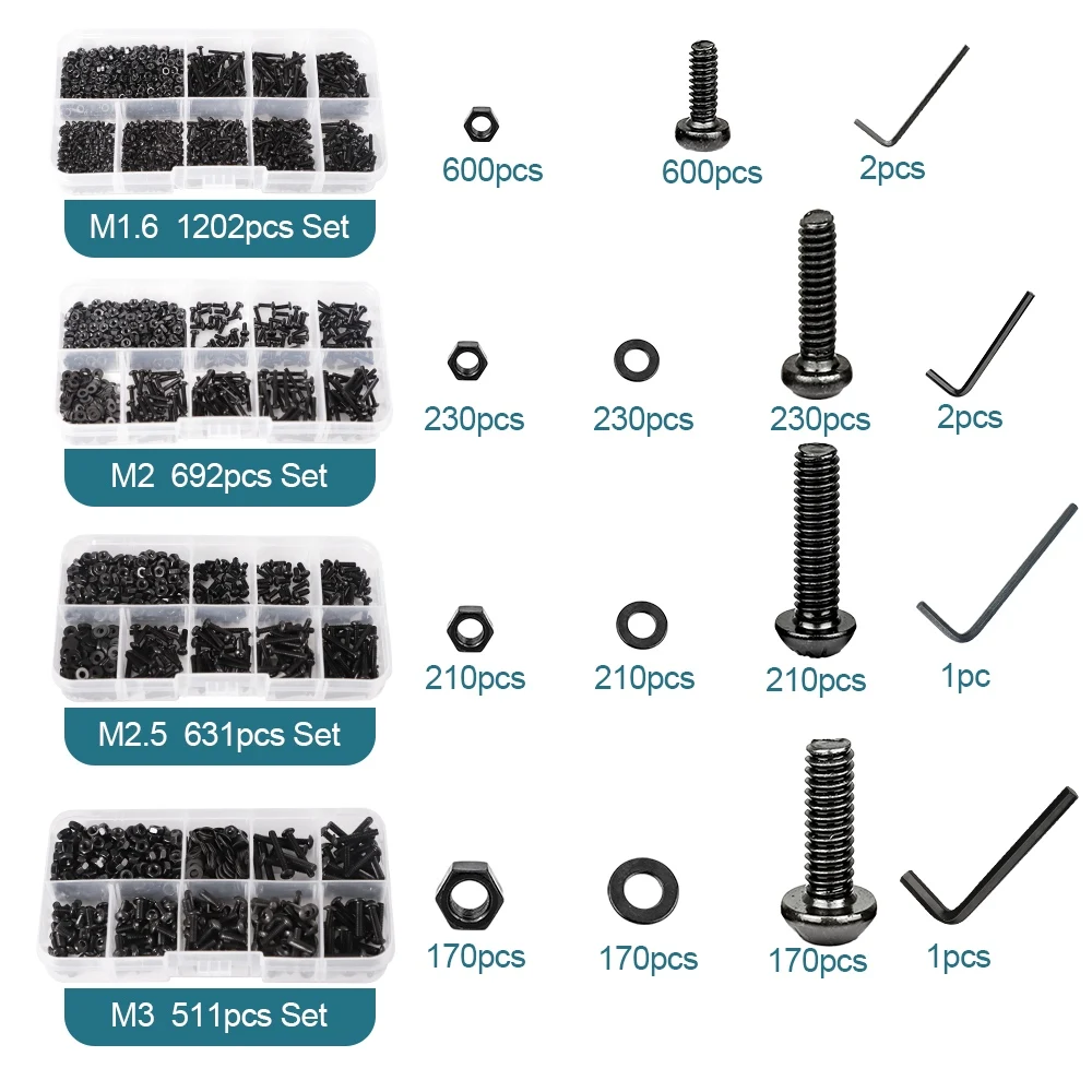 Juego de tornillos de cabeza hexagonal M1.6, M2, M2.5, M3, M4, M5, M6, M8 con tuercas y arandelas, color negro, grado 12.9, kit de tornillos y tuercas de cabeza redonda Allen