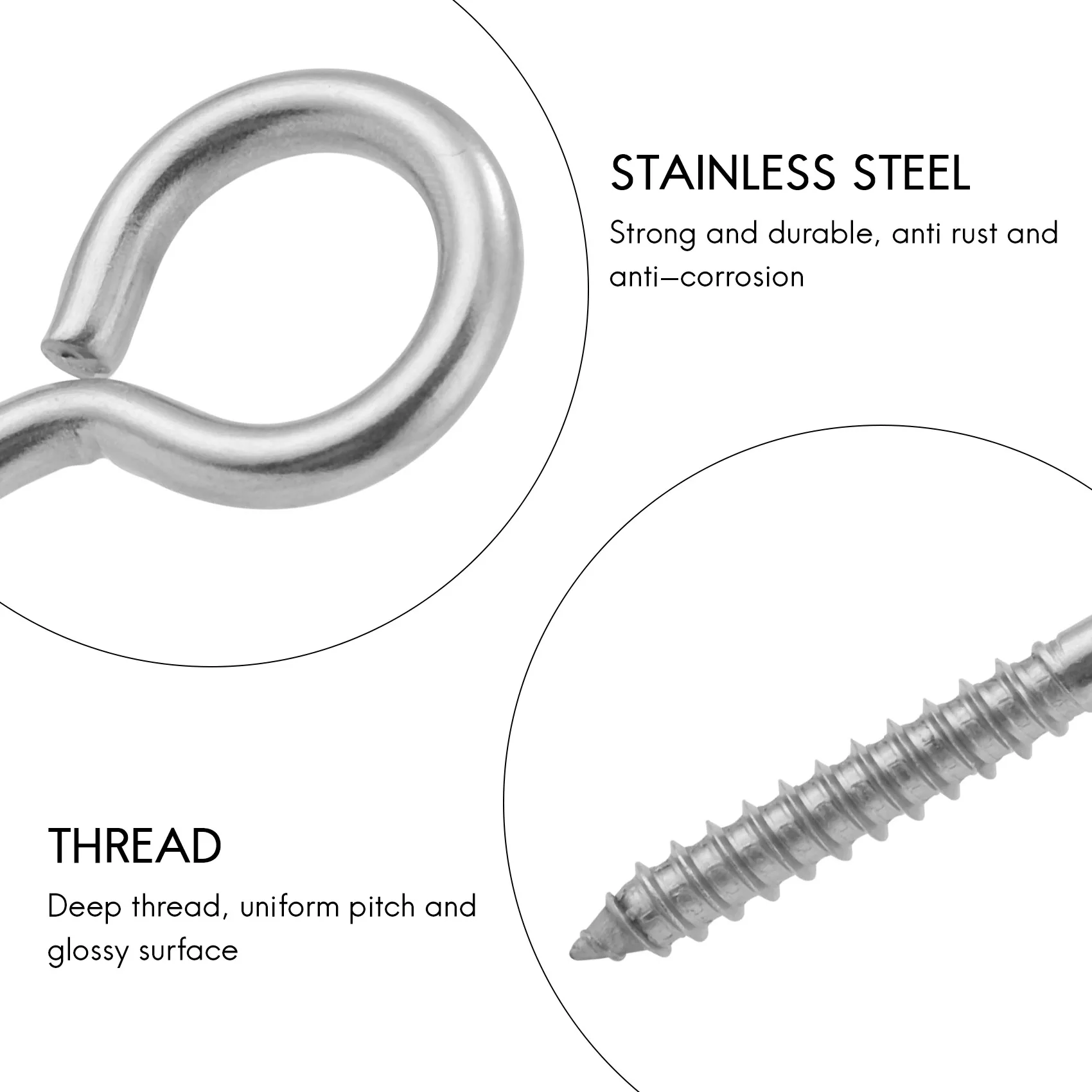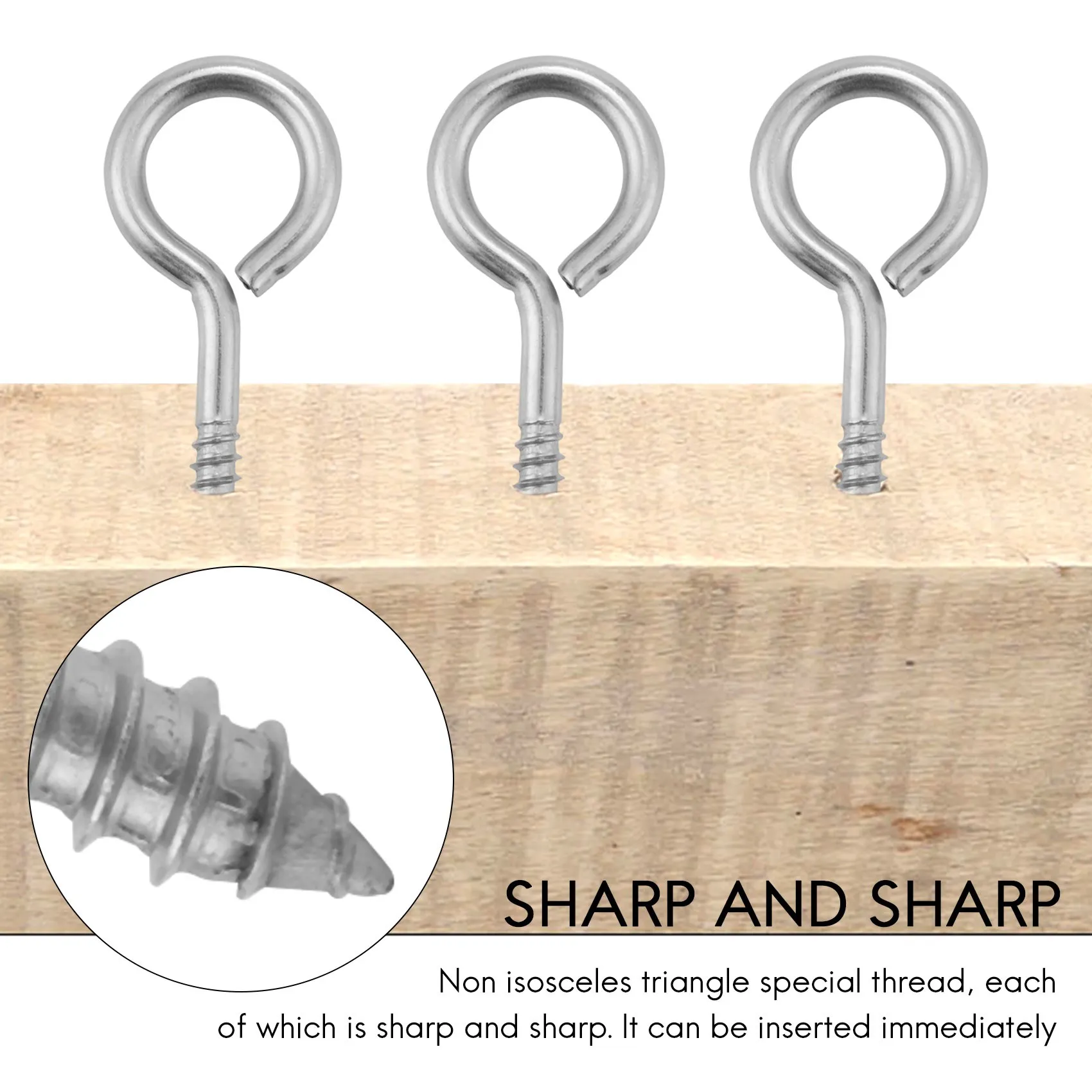 Paquete de 10 tornillos con forma de ojo de acero inoxidable, gancho de Metal, anillo Terminal de madera, ganchos con ojales, tornillos autorroscantes M6B84B