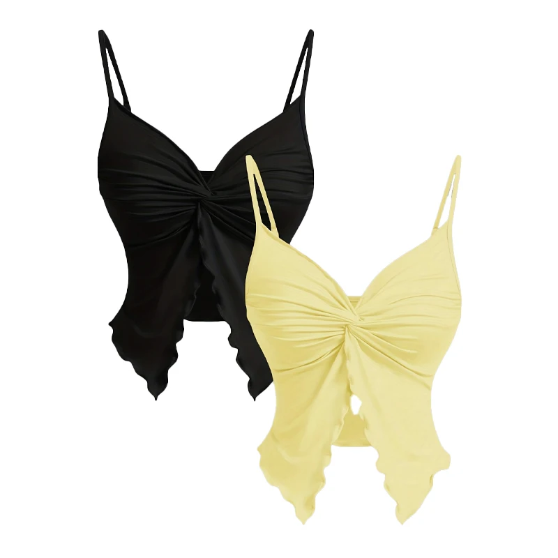 Camiseta Y2k para mujer, Top de encaje, camisola estética Harajuku, camiseta sin mangas, moda Vintage, chaleco informal que combina con todo, ropa de calle para mujer 2 uds